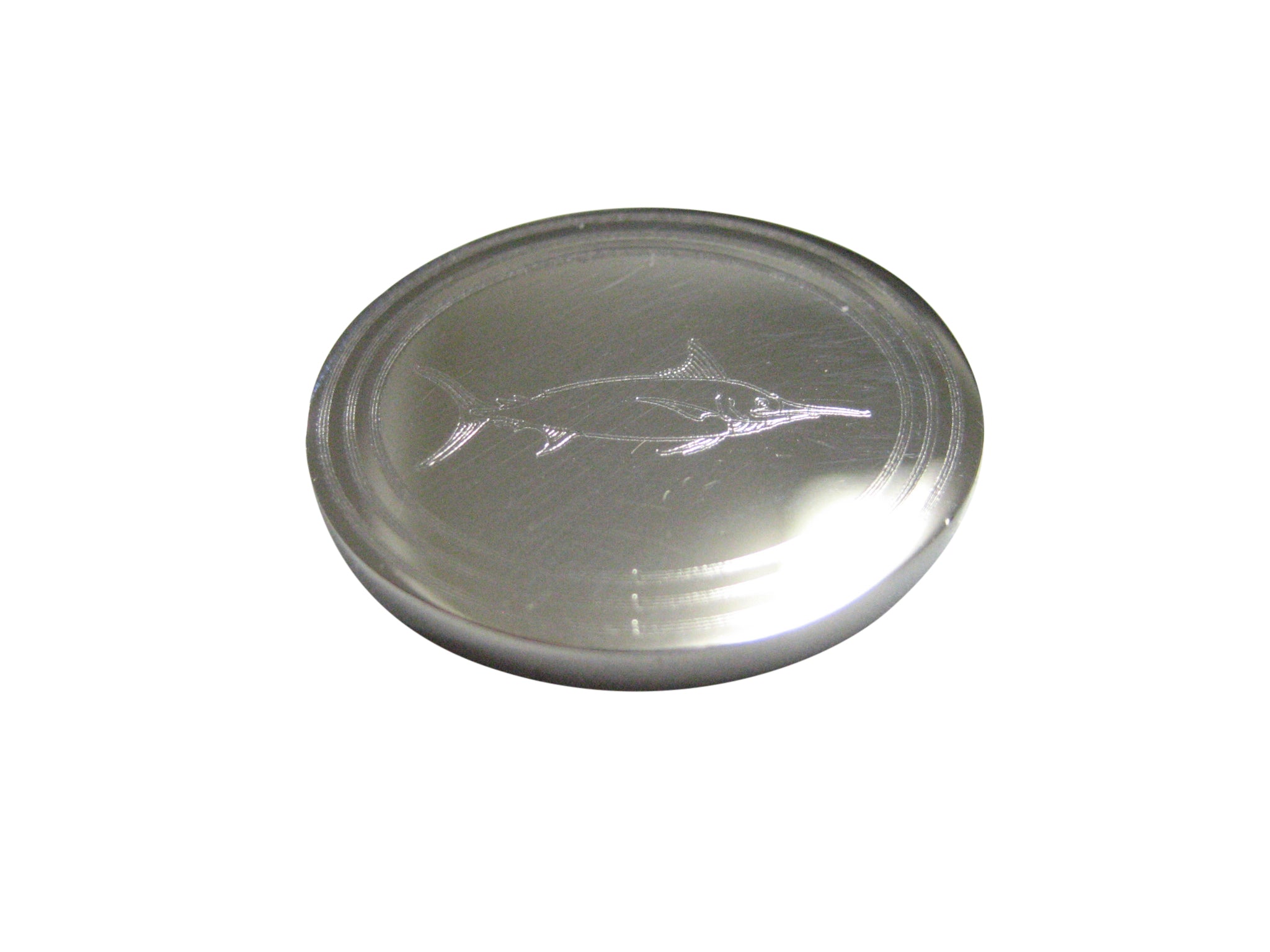 Silver Toned Oval Etched Marlin Sailfish Magnet