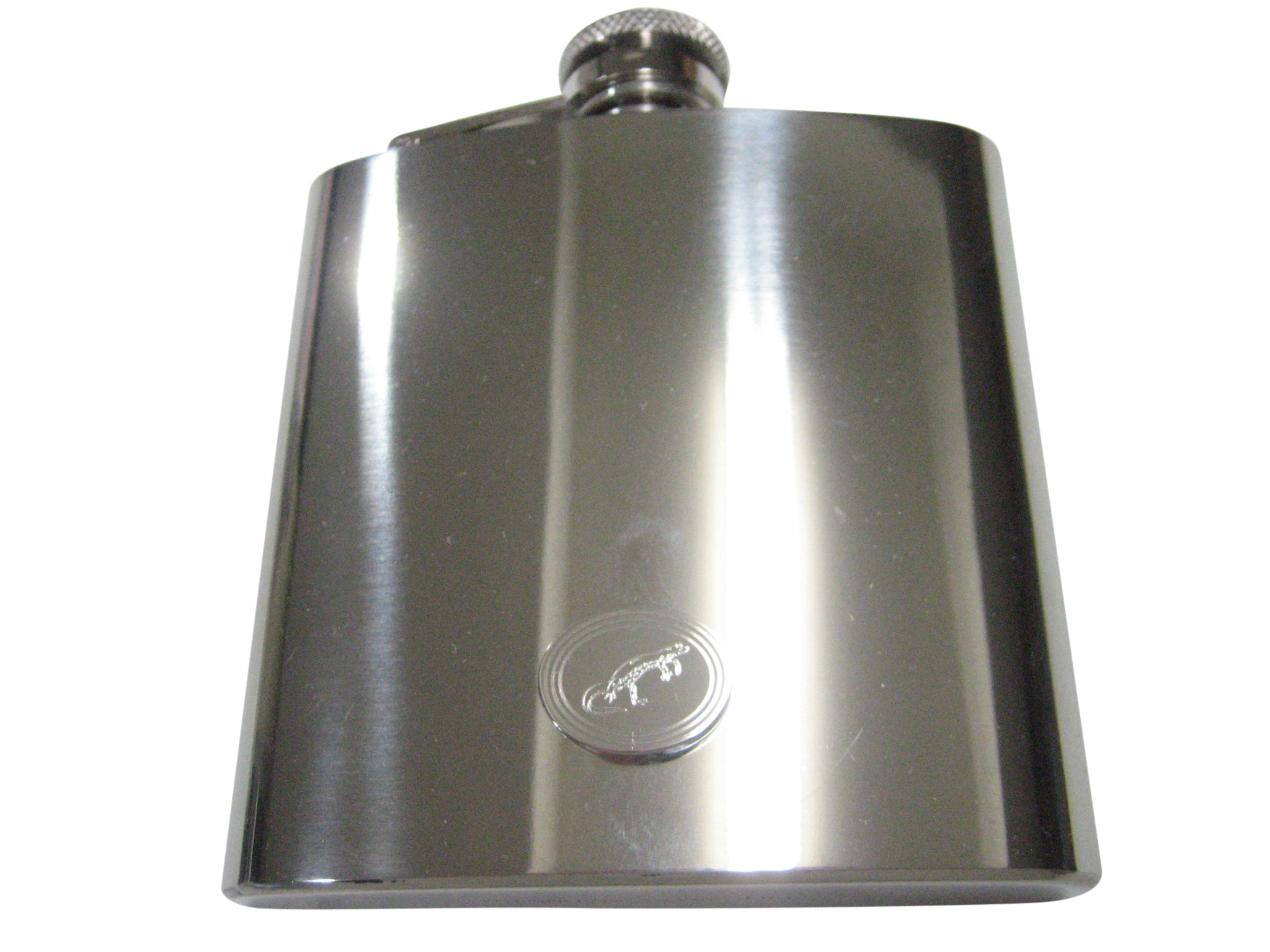 Silver Toned Oval Etched Newt Gecko Lizard 6oz Flask