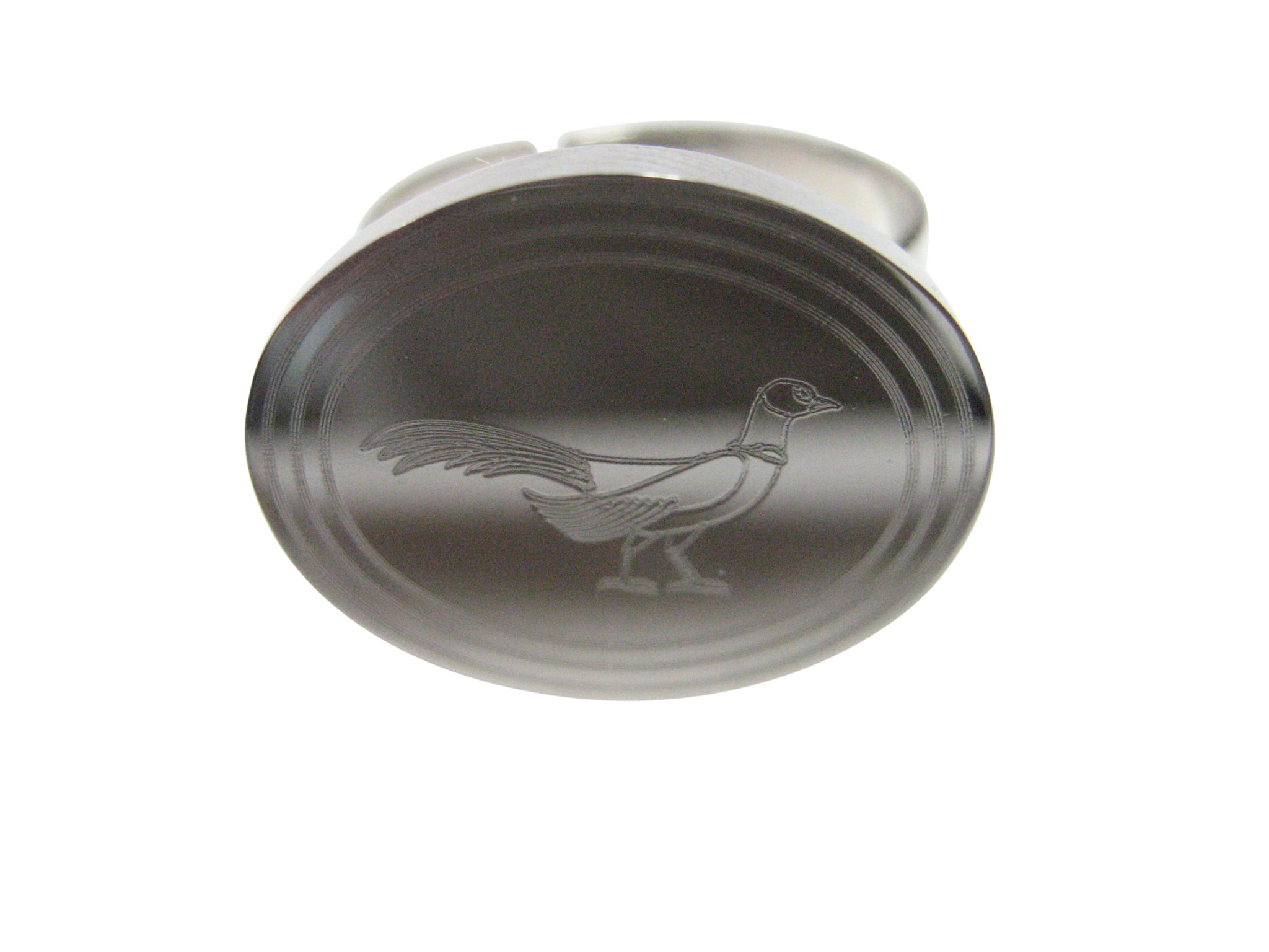 Silver Toned Oval Etched Pheasant Bird Adjustable Size Fashion Ring