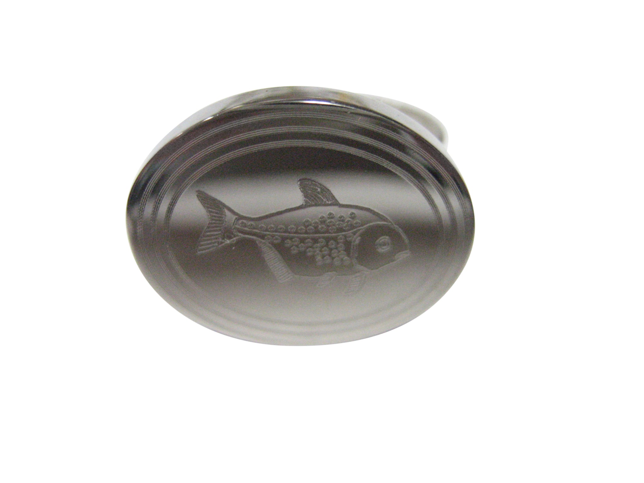 Silver Toned Oval Etched Piranha Pirana Fish Adjustable Size Fashion Ring