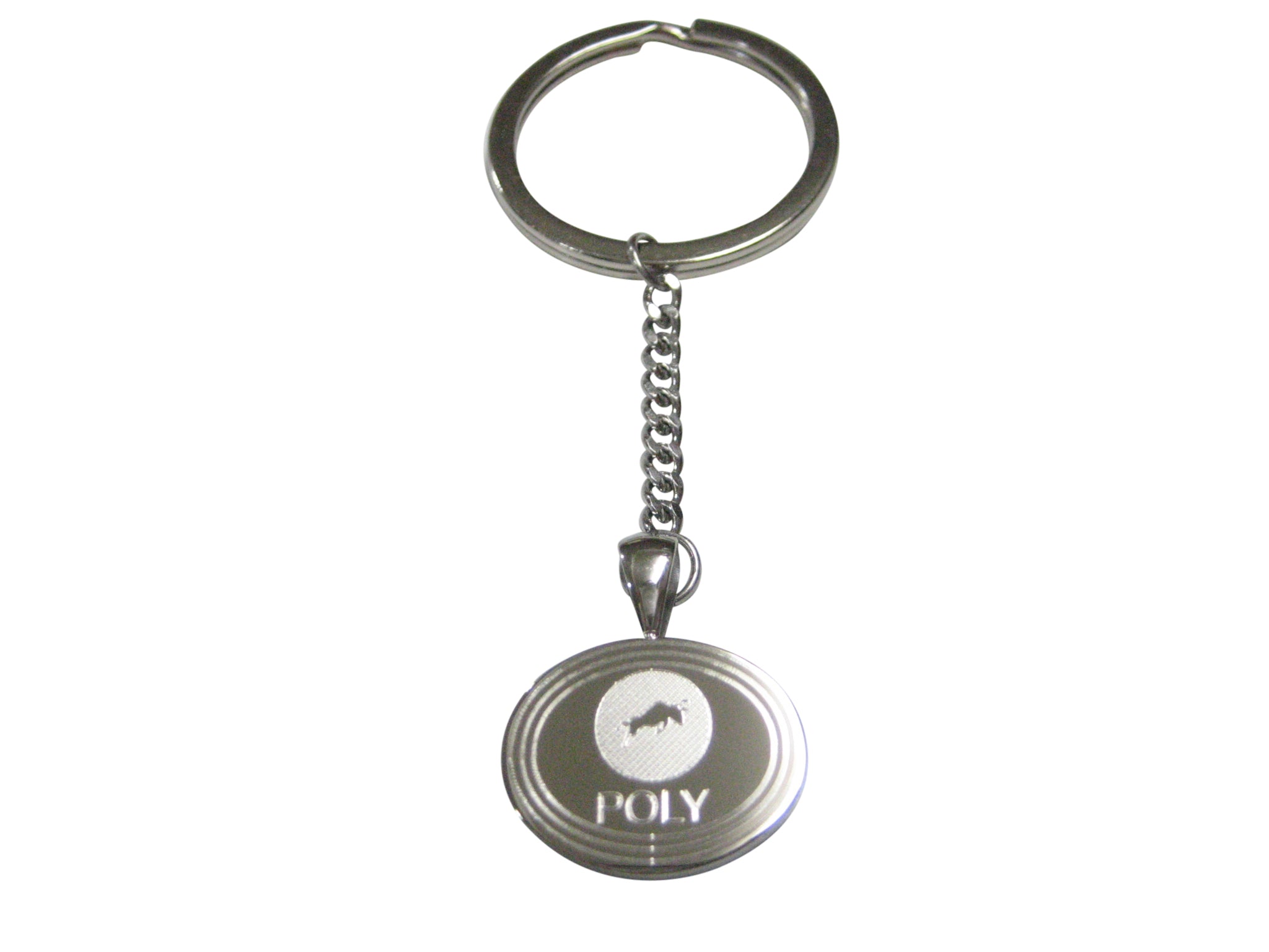 Silver Toned Oval Etched Polymath Coin POLY Cryptocurrency Blockchain Pendant Keychain