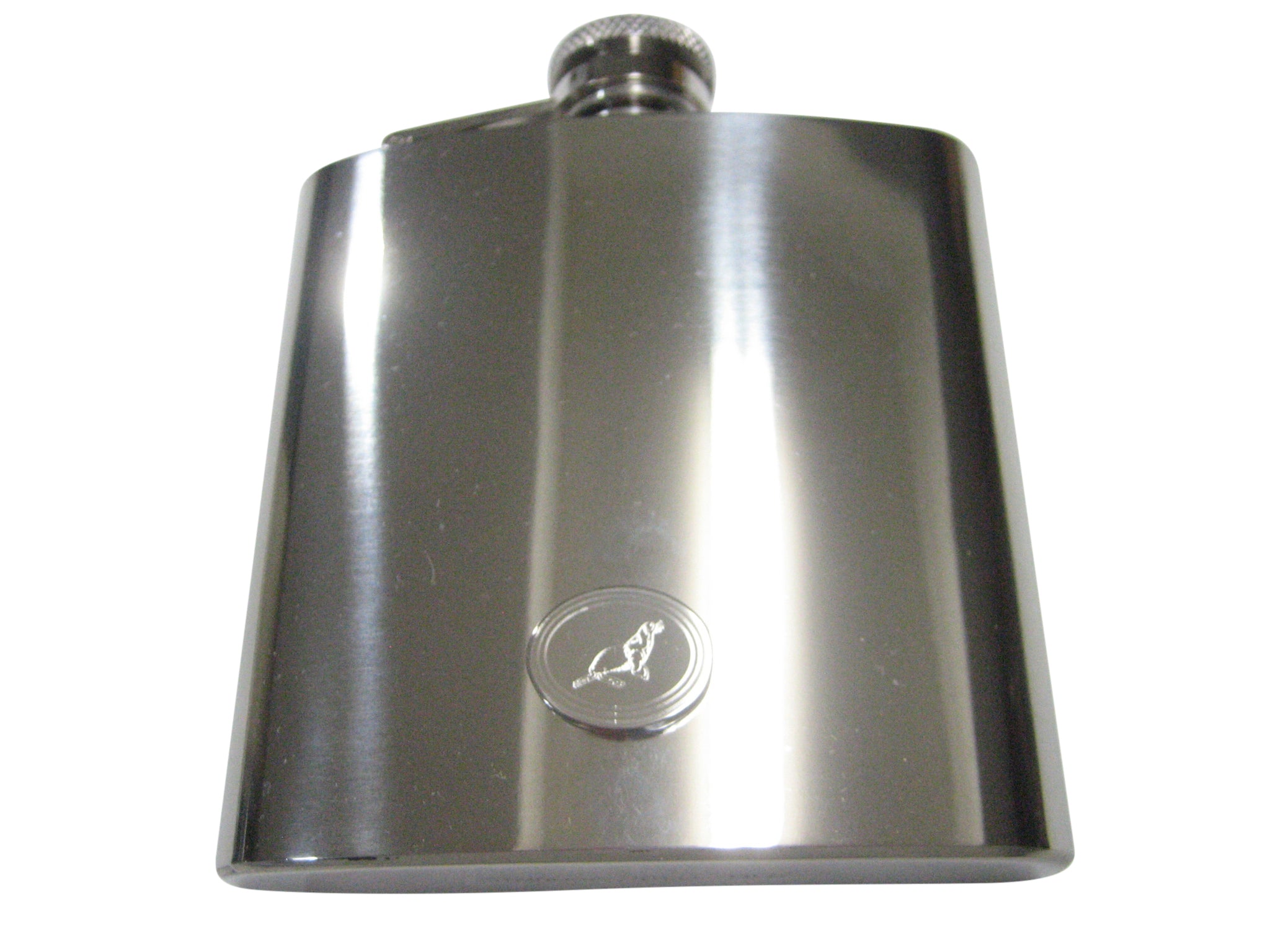 Silver Toned Oval Etched Sea Lion 6oz Flask