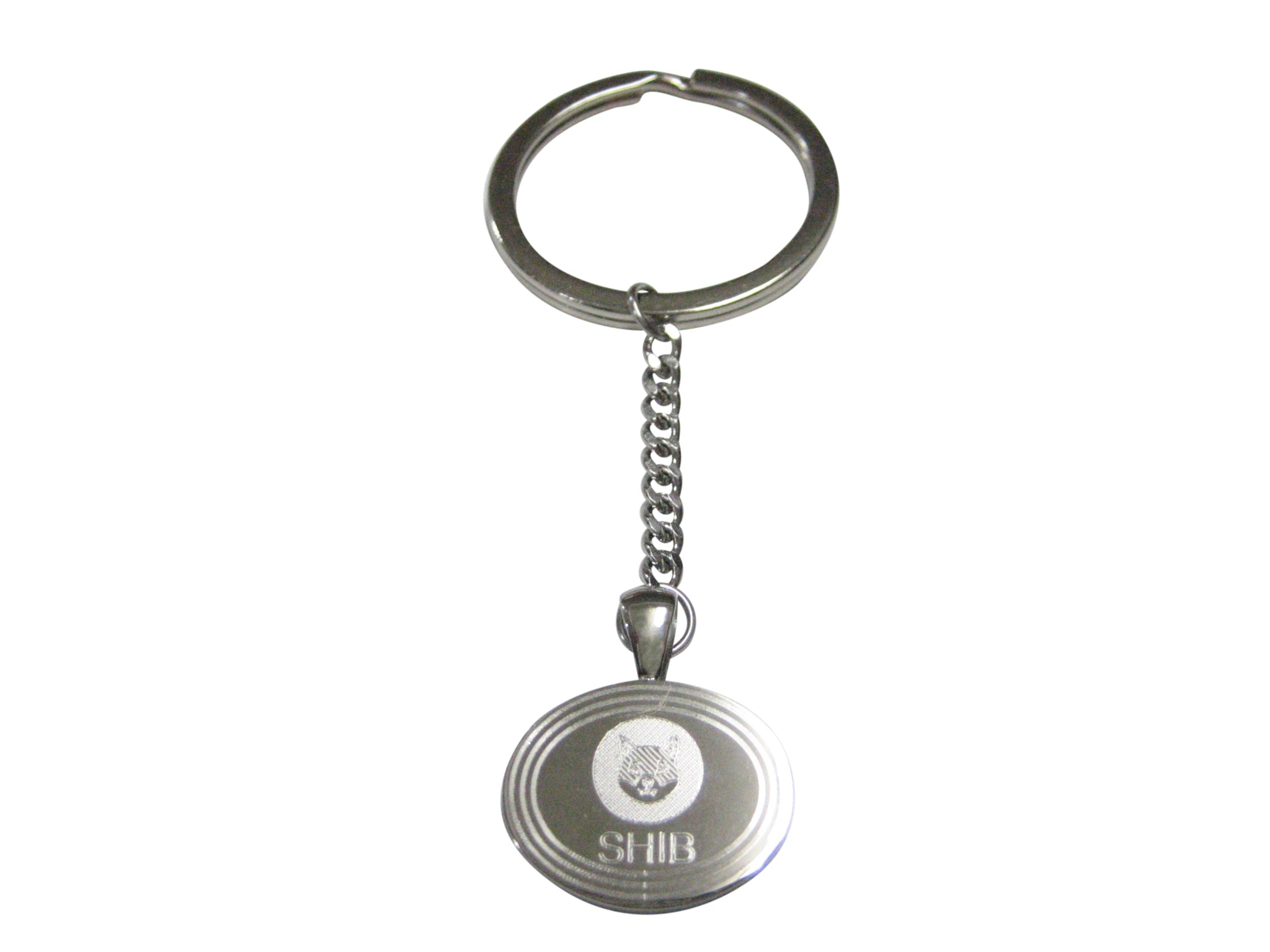 Silver Toned Oval Etched Shiba Inu Coin SHIB Cryptocurrency Blockchain Pendant Keychain