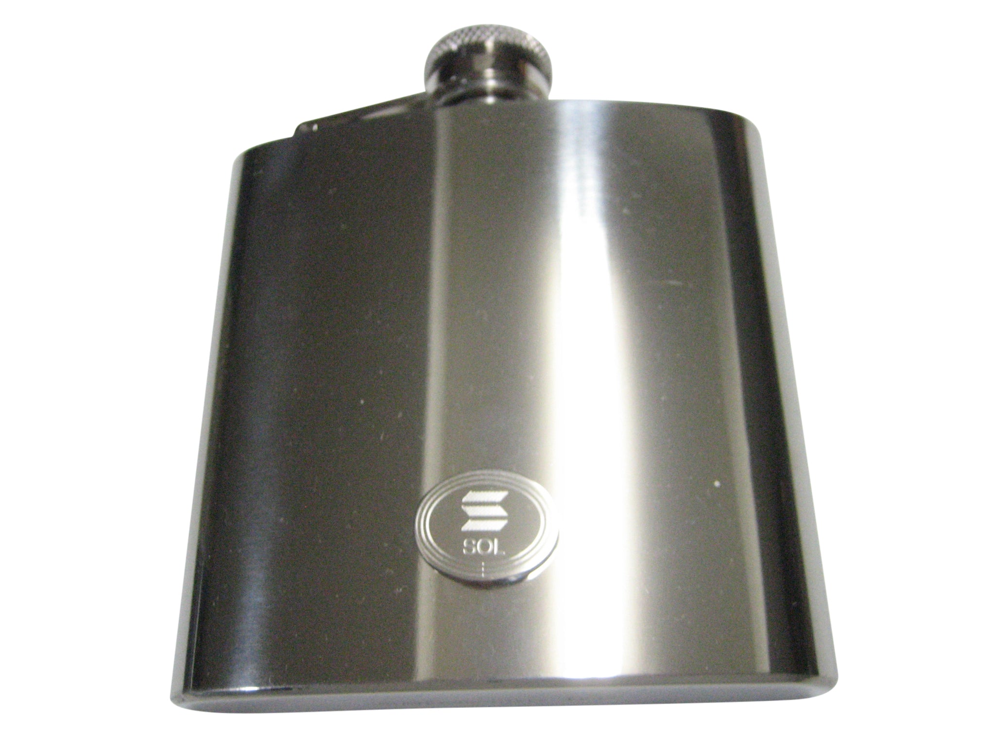 Silver Toned Oval Etched Solana Coin Cryptocurrency Blockchain 6oz Flask