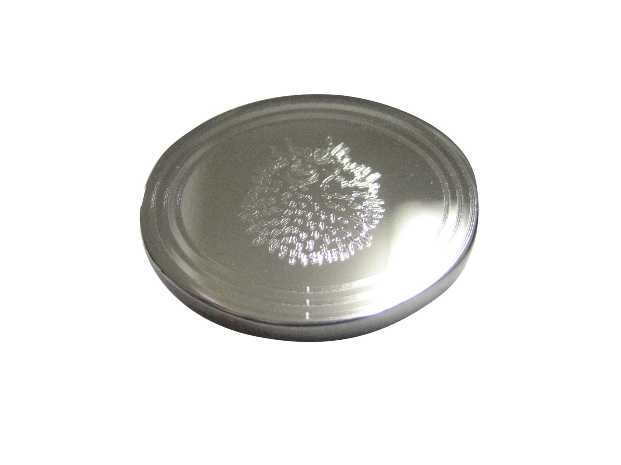 Silver Toned Oval Etched Spikey Puffer Fish Fugu Blowfish Magnet
