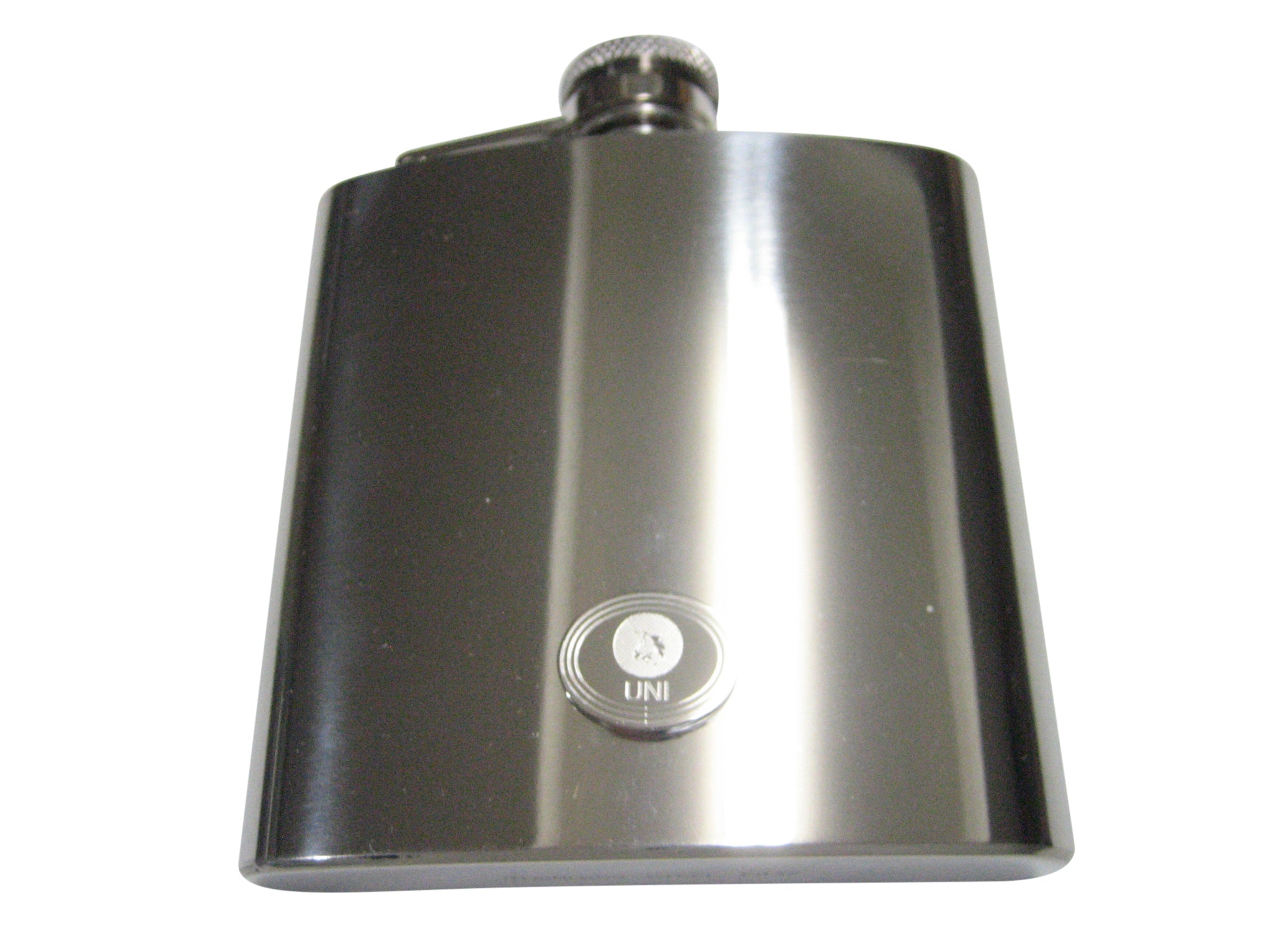 Silver Toned Oval Etched Uniswap Coin Cryptocurrency Blockchain 6oz Flask