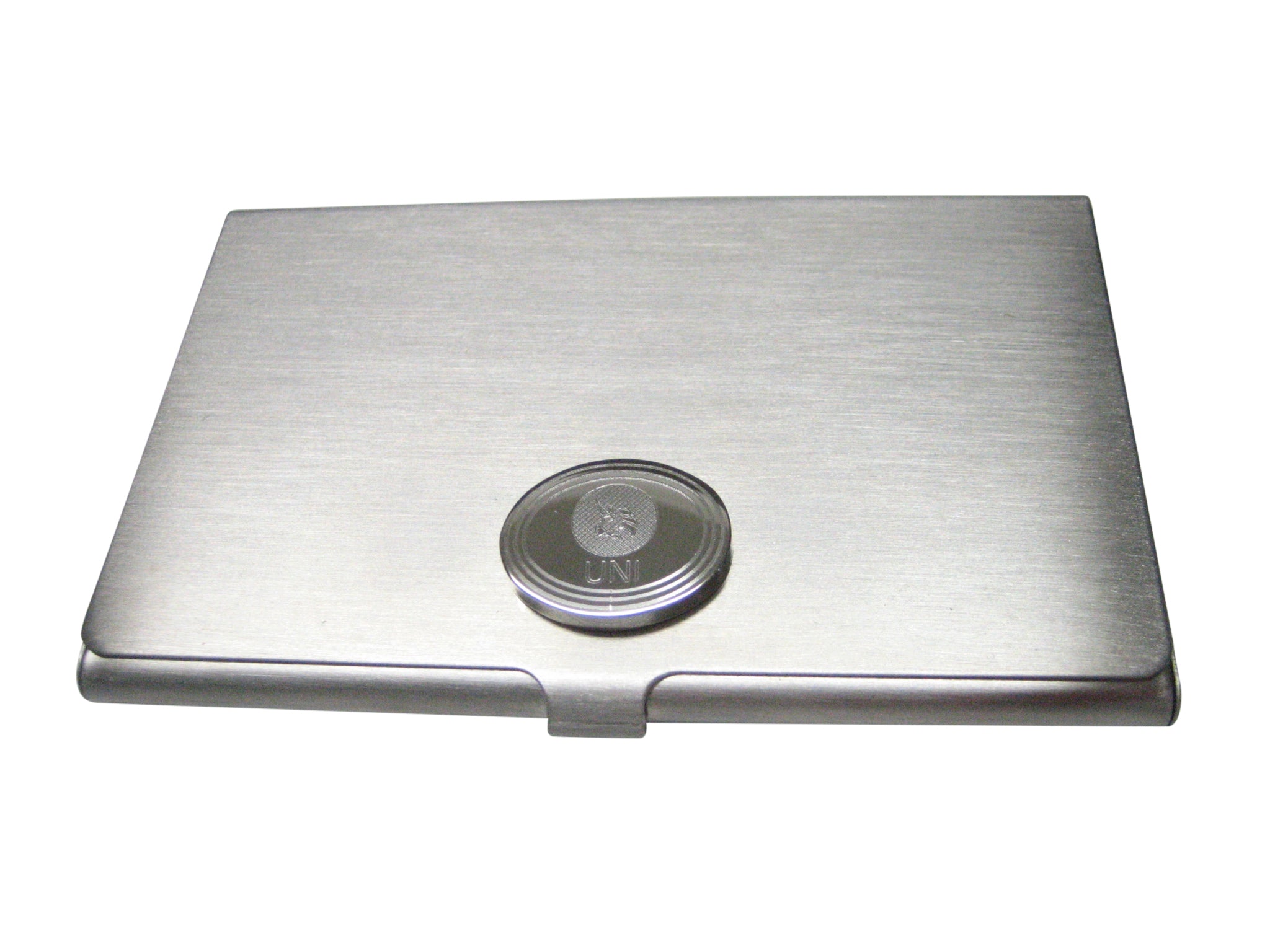 Silver Toned Oval Etched Uniswap Coin Cryptocurrency Blockchain Business Card Holder