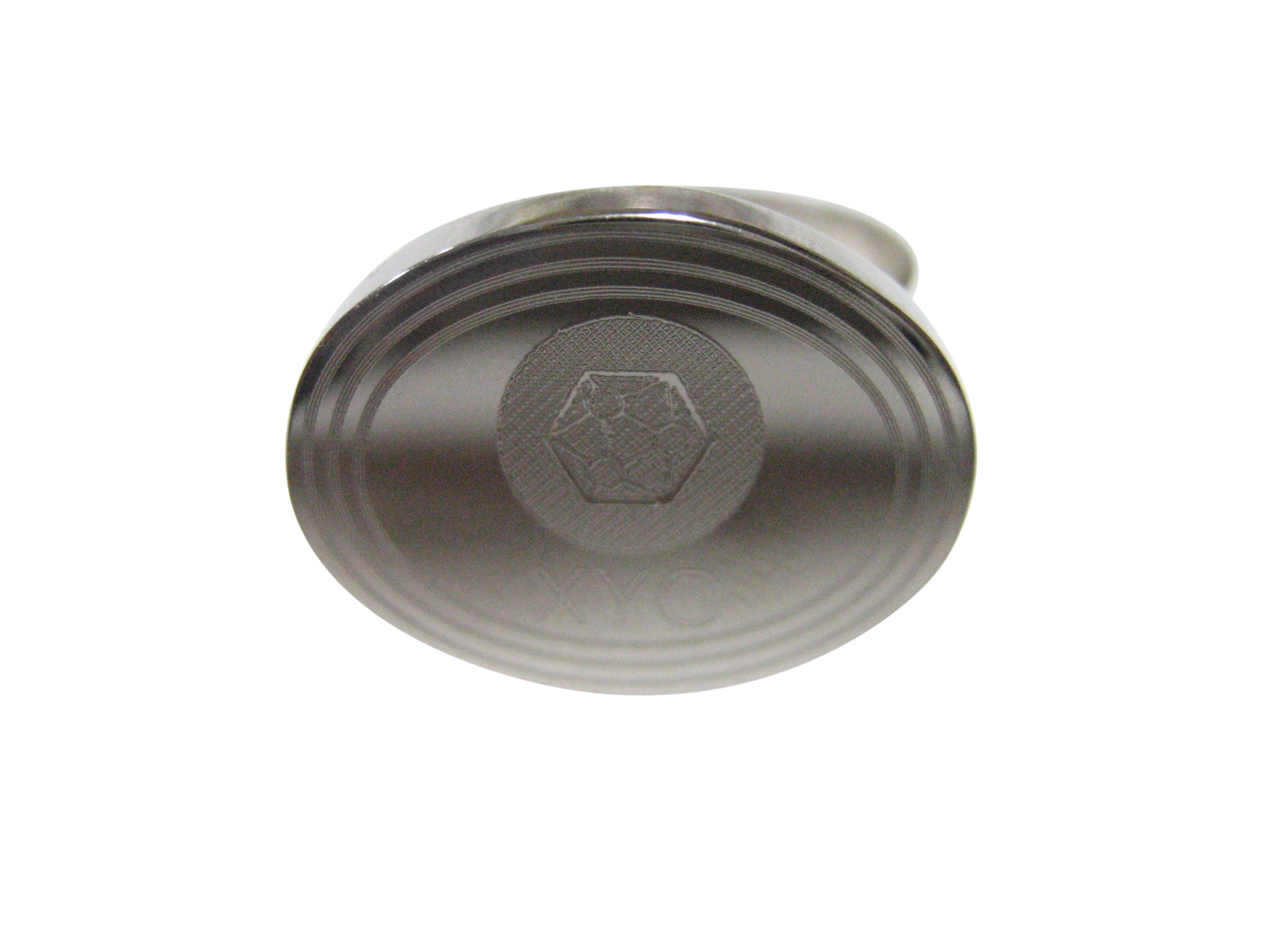 Silver Toned Oval Pendant Etched XYO Coin Cryptocurrency Blockchain Adjustable Size Fashion Ring