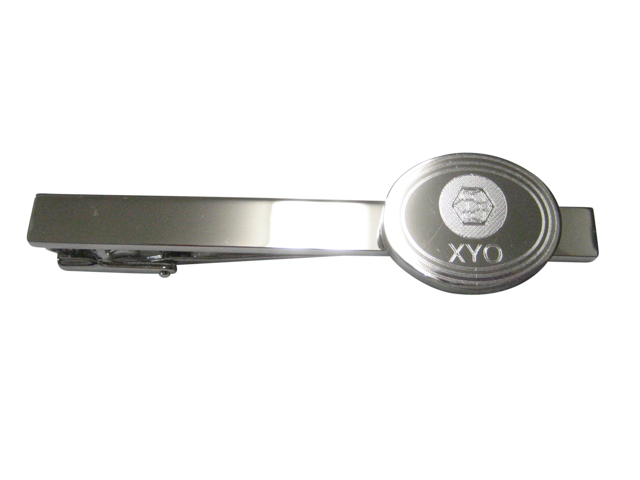 Silver Toned Oval Pendant Etched XYO Coin Cryptocurrency Blockchain Tie Clip