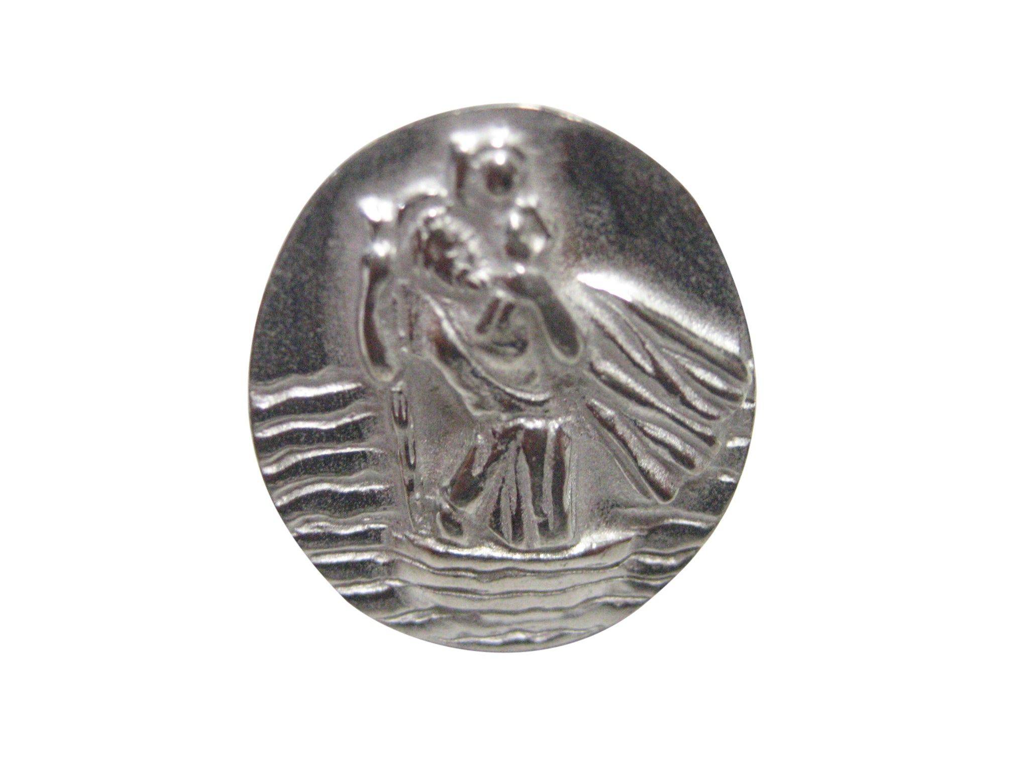 Silver Toned Oval Saint Christopher Adjustable Sized Fashion Ring