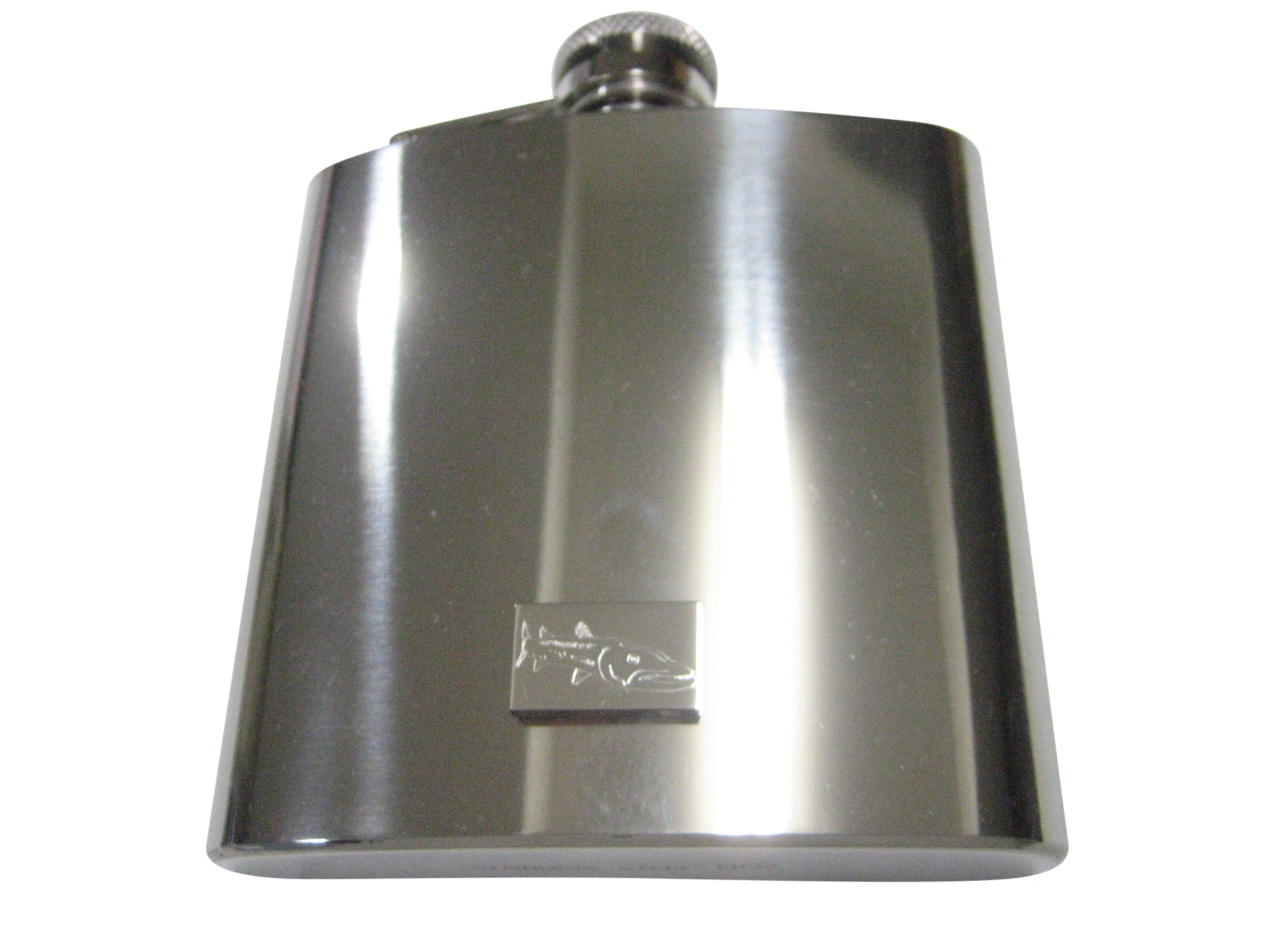 Silver Toned Rectangular Etched Barracuda Fish 6oz Flask