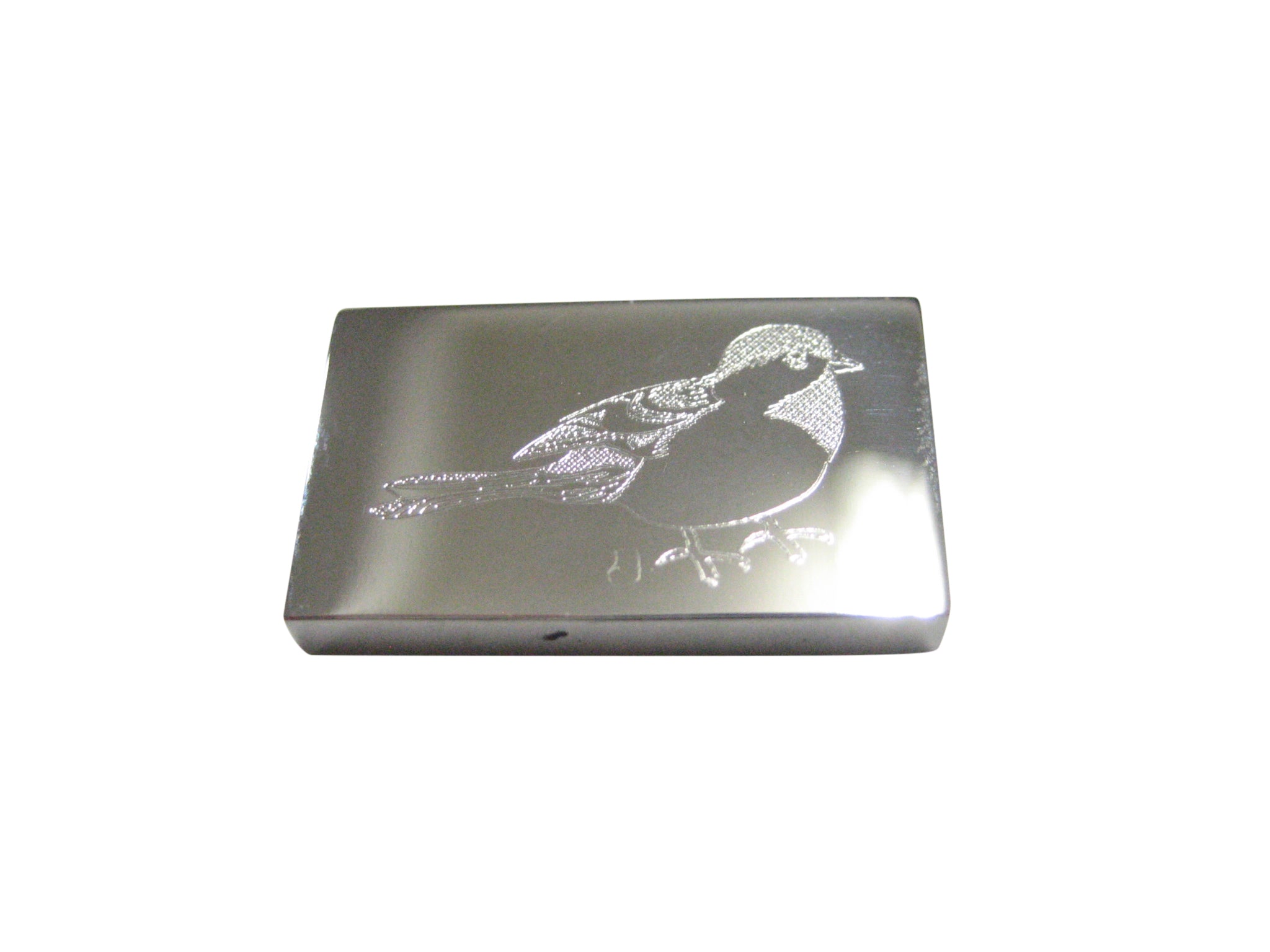 Silver Toned Rectangular Etched Chickadee Bird Magnet