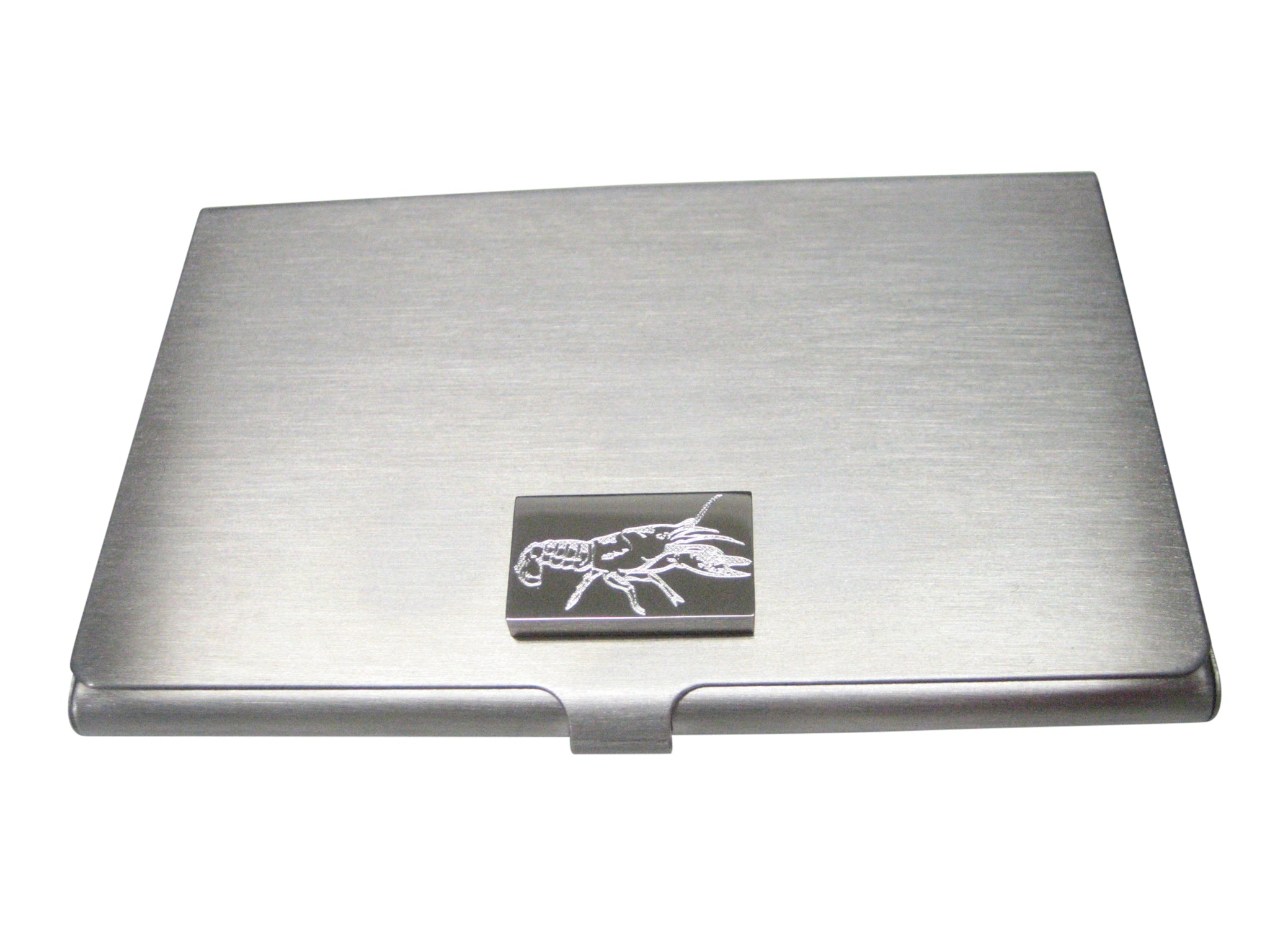 Silver Toned Rectangular Etched Crayfish Crawfish Crawdad Business Card Holder