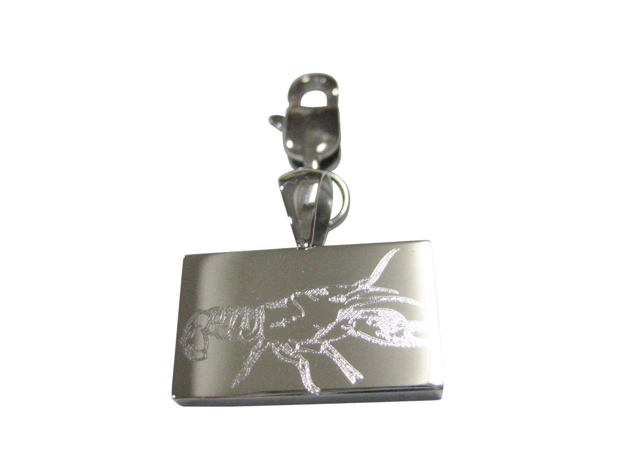 Silver Toned Rectangular Etched Crayfish Crawfish Crawdad Pendant Zipper Pull Charm