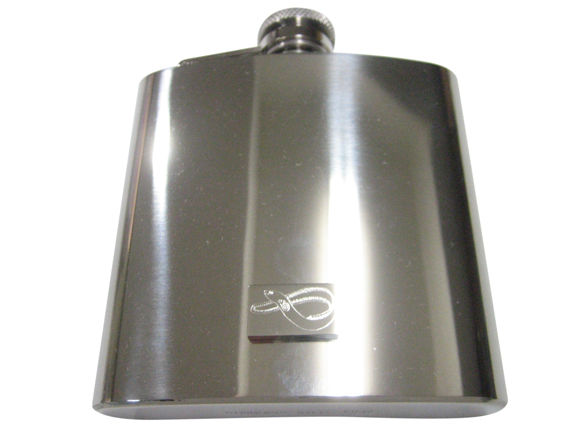 Silver Toned Rectangular Etched Eel Fish 6oz Flask