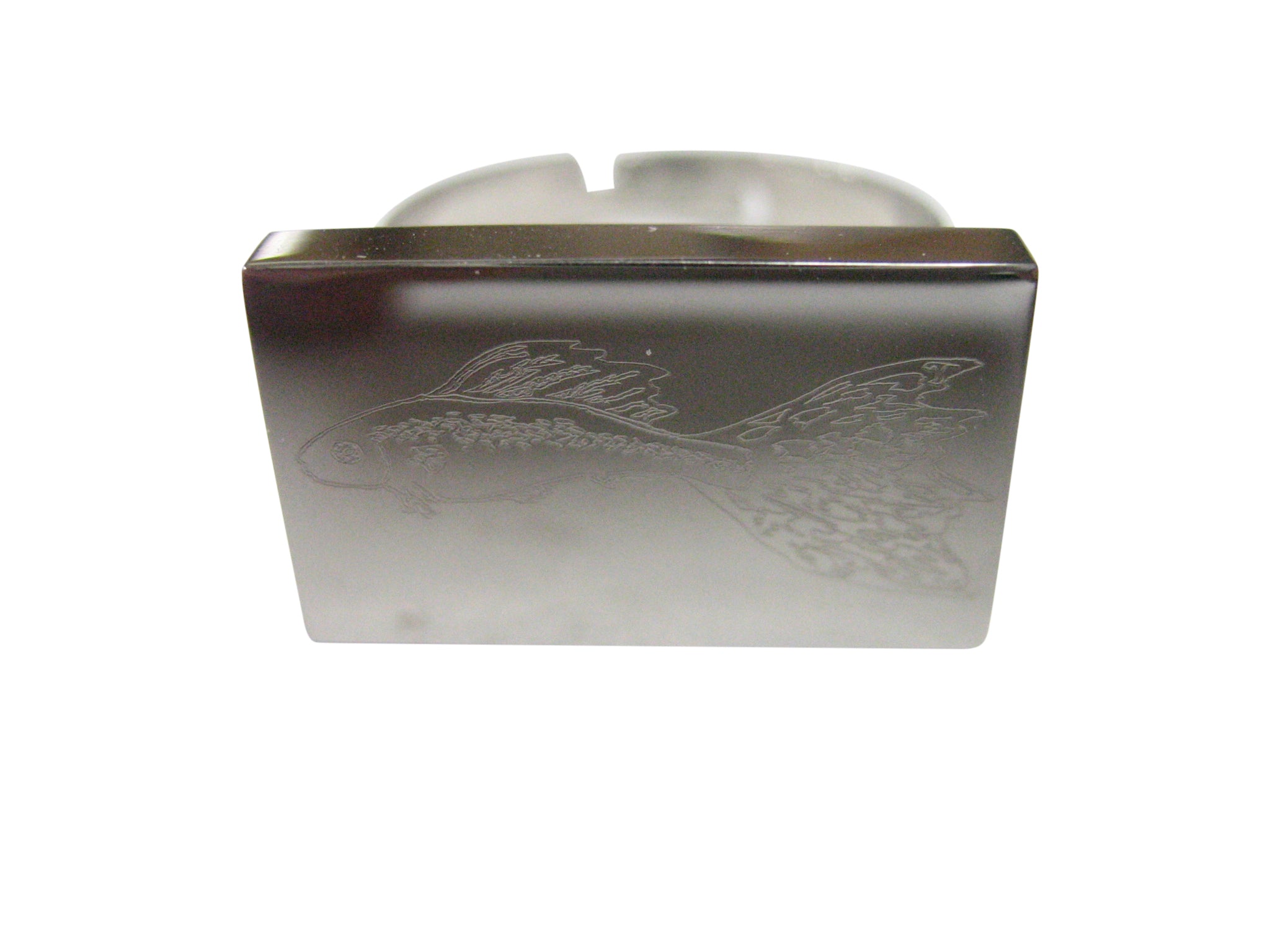 Silver Toned Rectangular Etched Guppy Fish Adjustable Size Fashion Ring