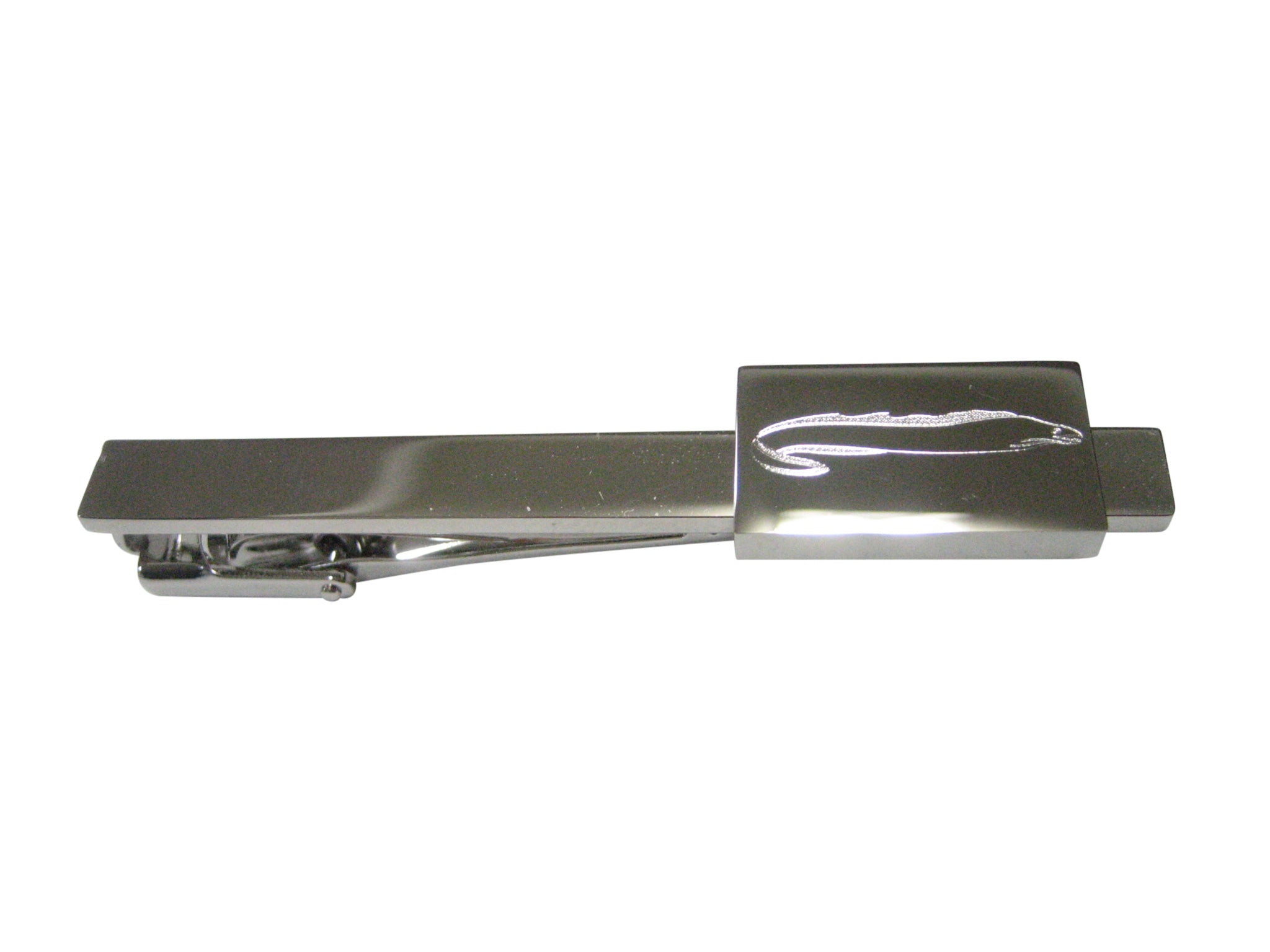 Silver Toned Rectangular Etched Moray Eel Fish Tie Clip