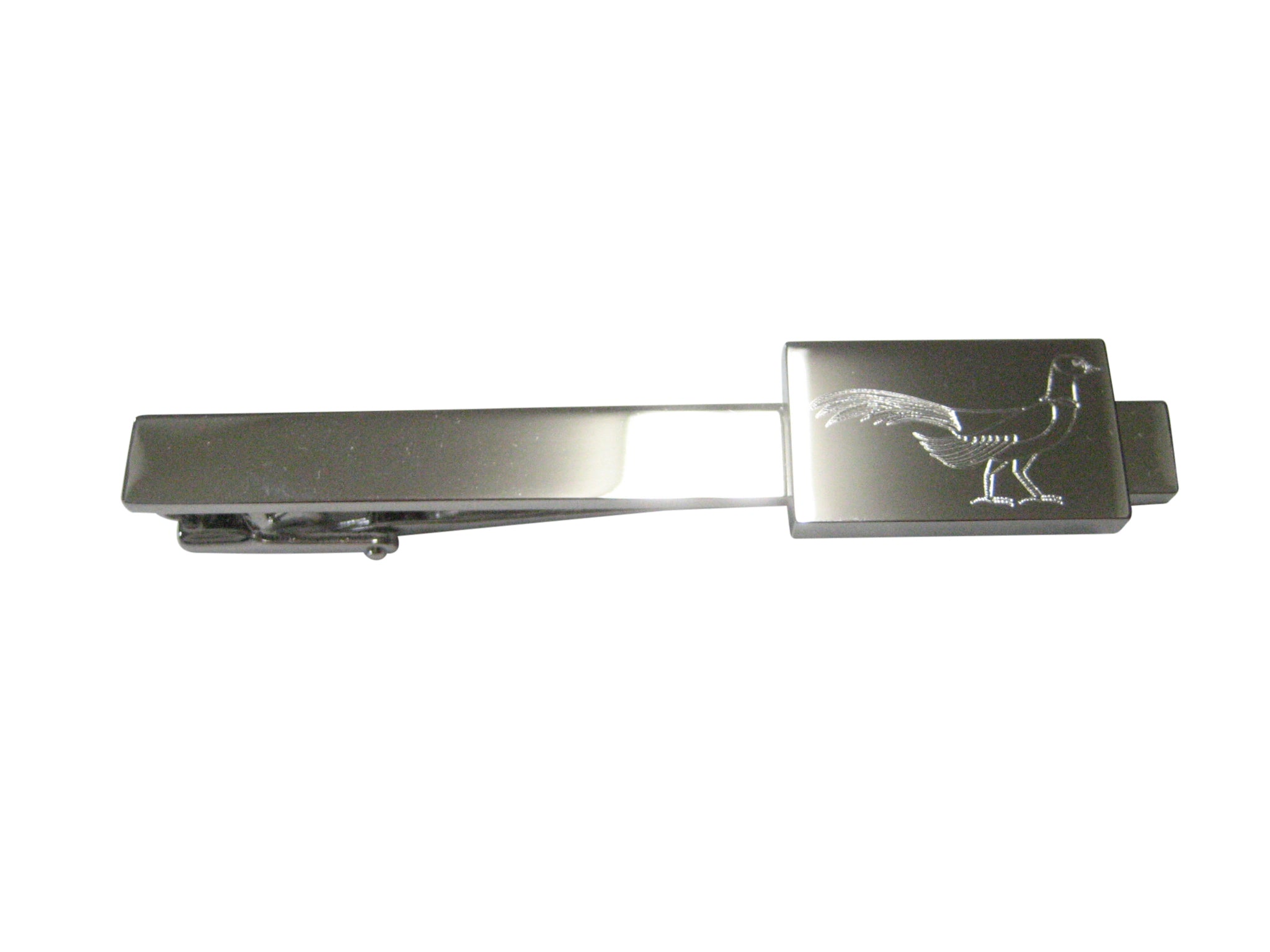 Silver Toned Rectangular Etched Pheasant Bird Tie Clip