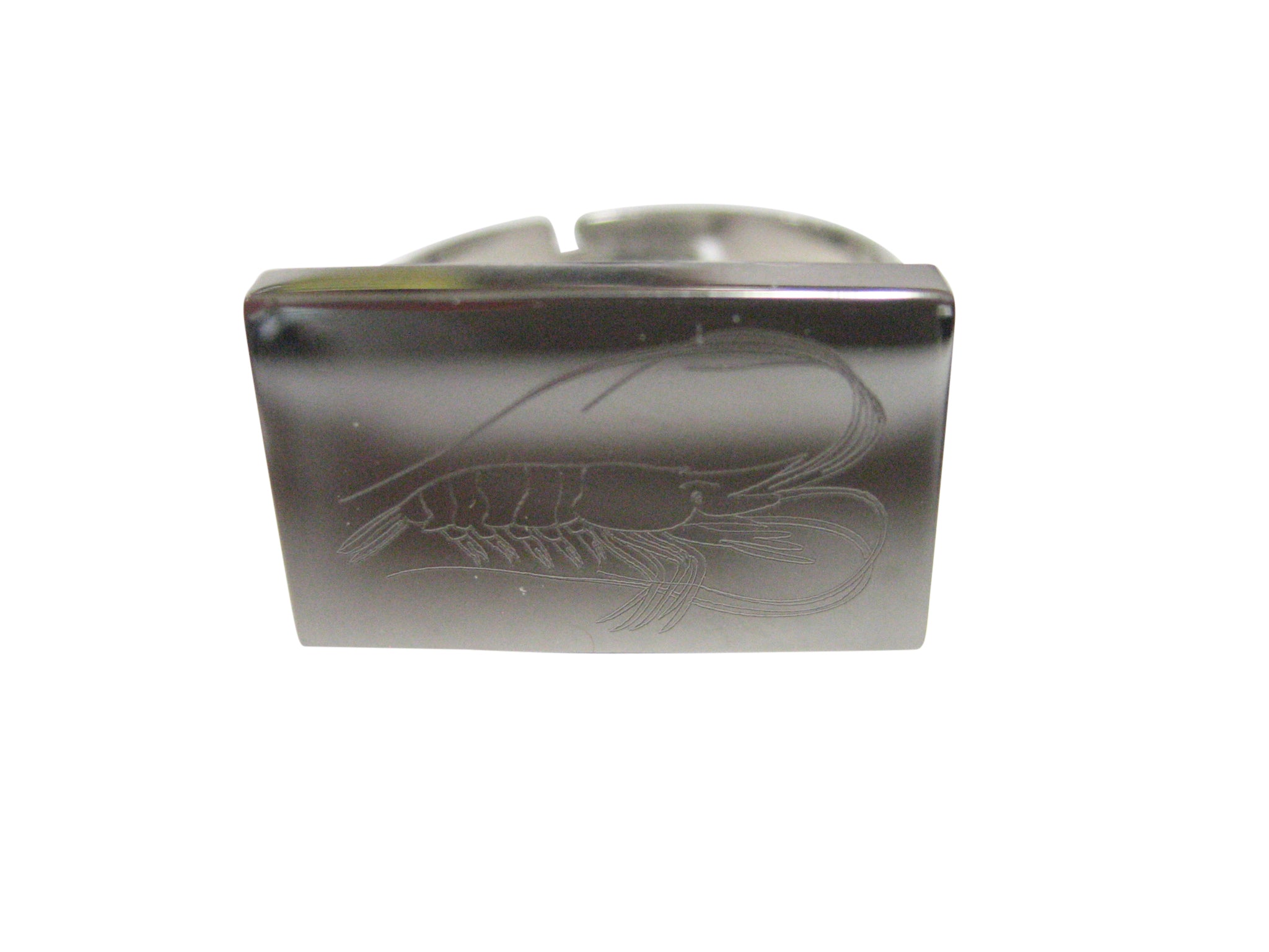 Silver Toned Rectangular Etched Shrimp Adjustable Size Fashion Ring