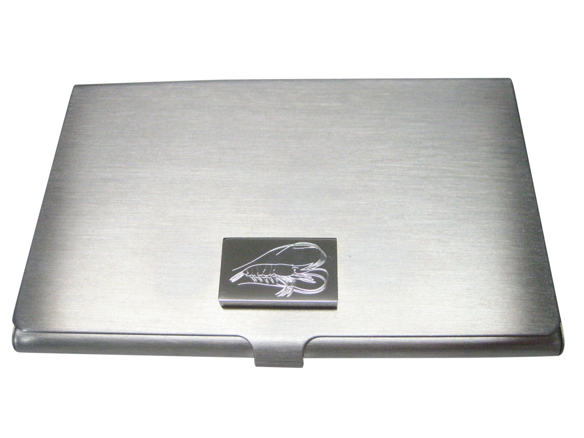 Silver Toned Rectangular Etched Shrimp Business Card Holder