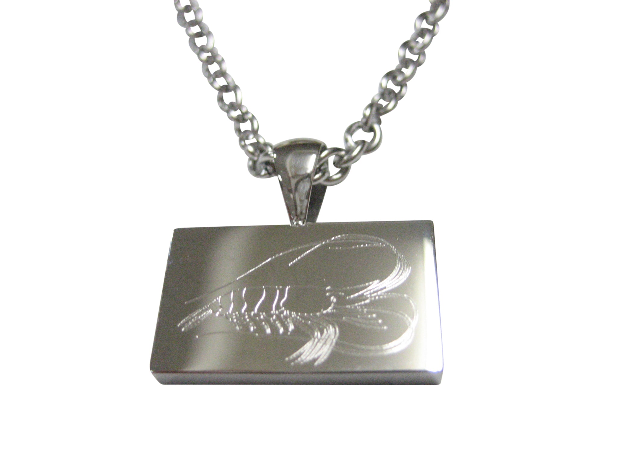Silver Toned Rectangular Etched Shrimp Pendant Necklace
