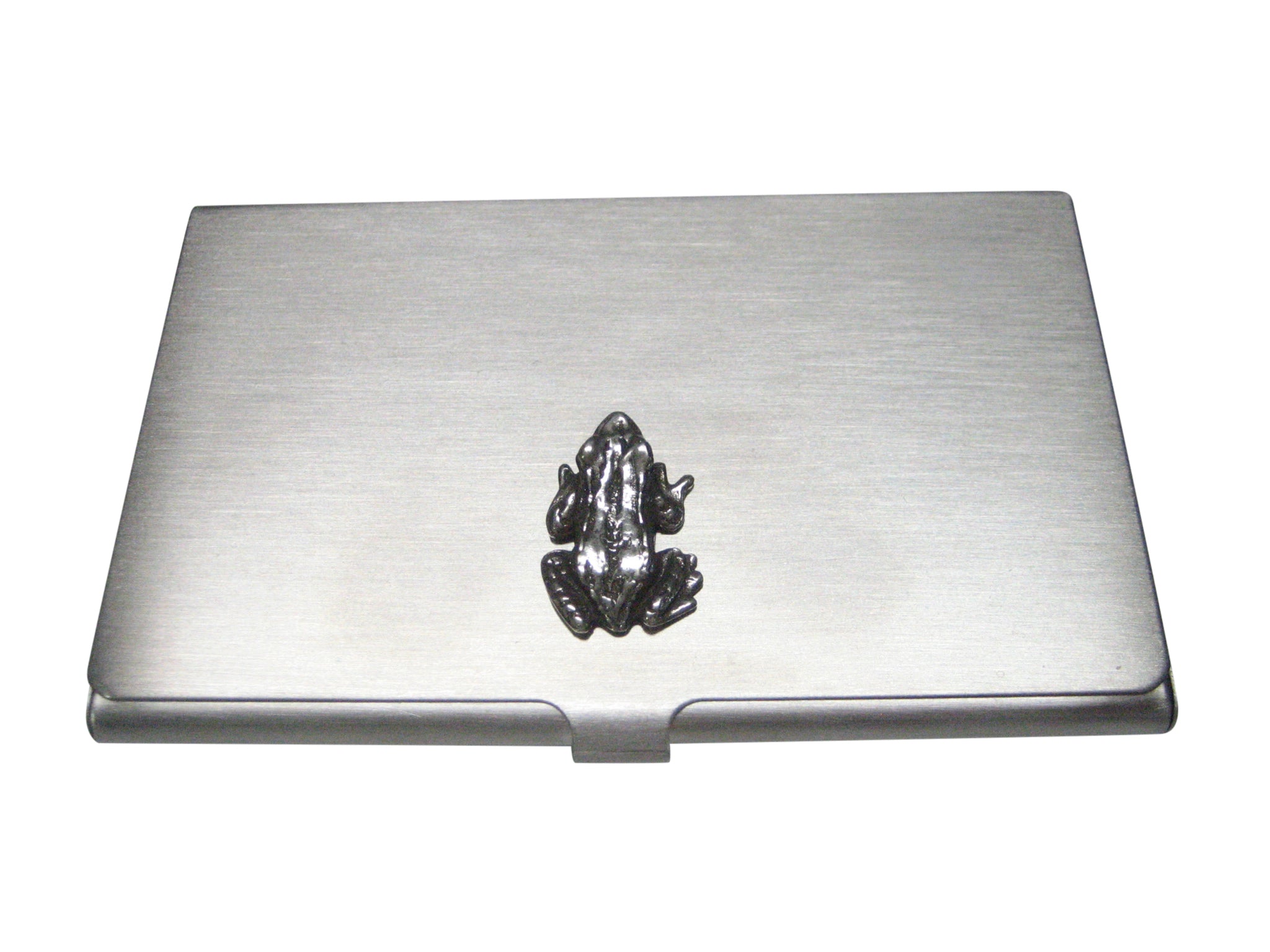 Silver Toned Small Detailed Frog Toad Business Card Holder