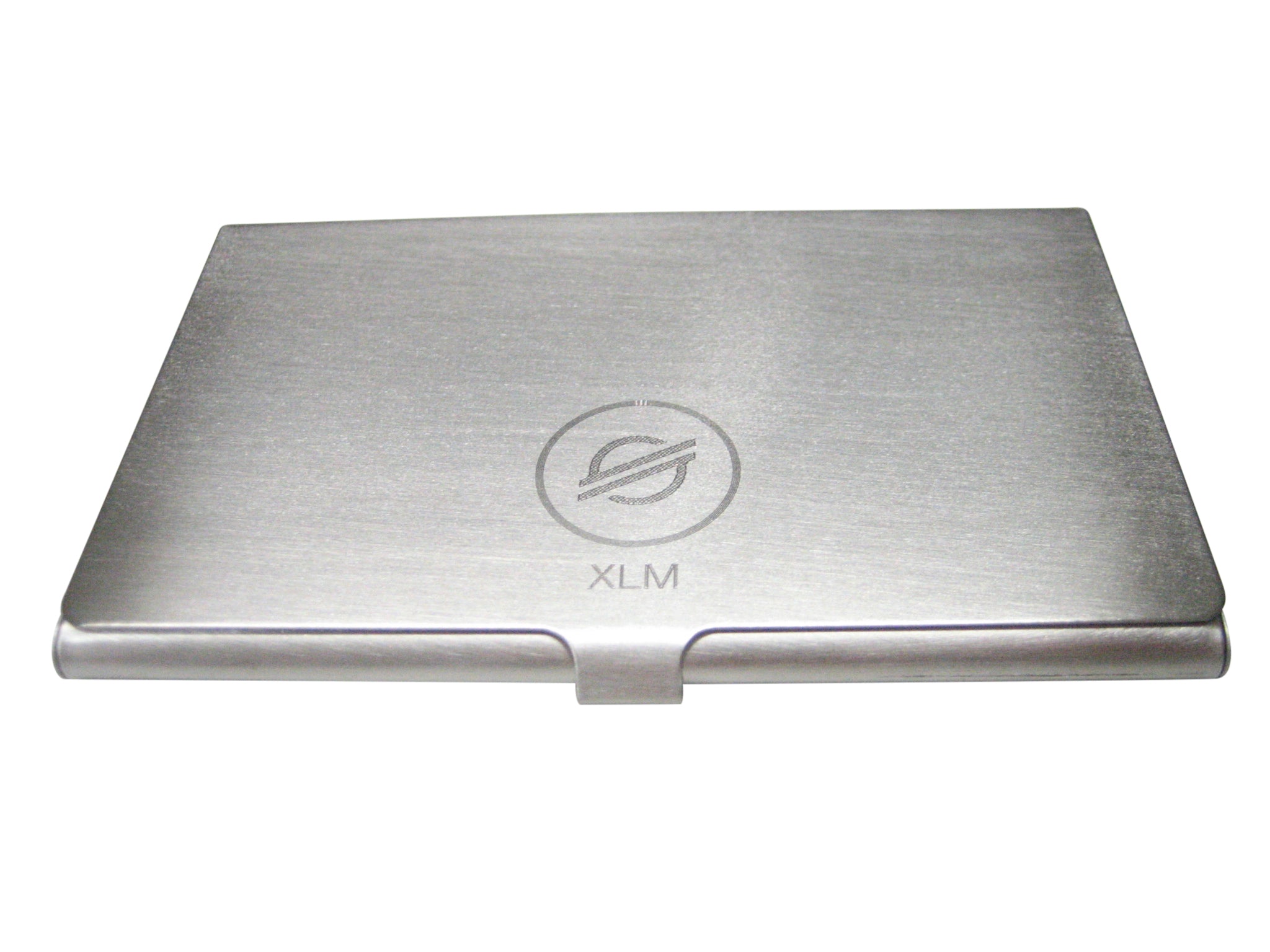 Silver Toned Small Etched Sleek Stellar Lumens Coin XLM Cryptocurrency Blockchain Business Card Holder