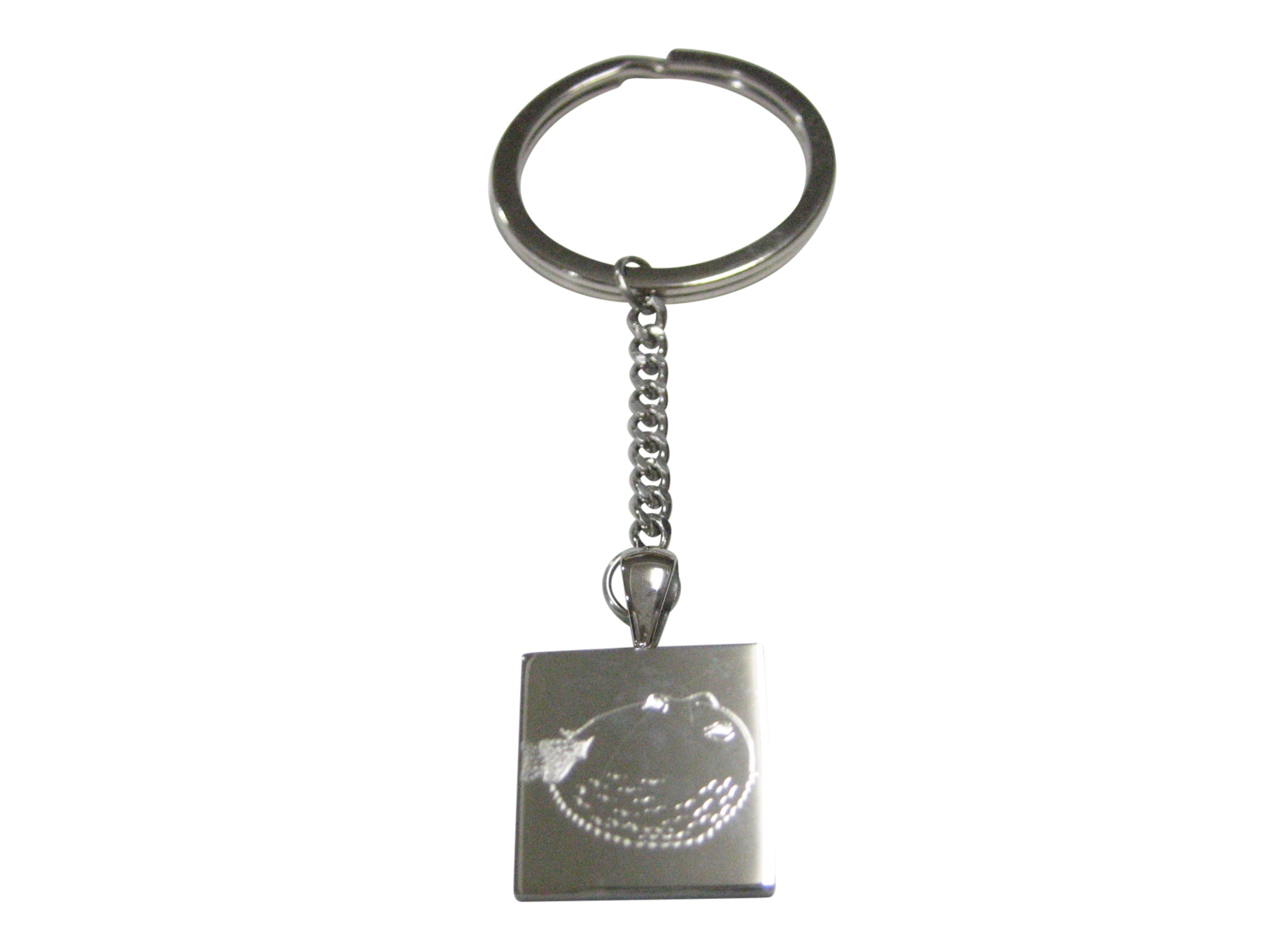 Silver Toned Square Etched Blowfish Fugu Puffer Fish Pendant Keychain