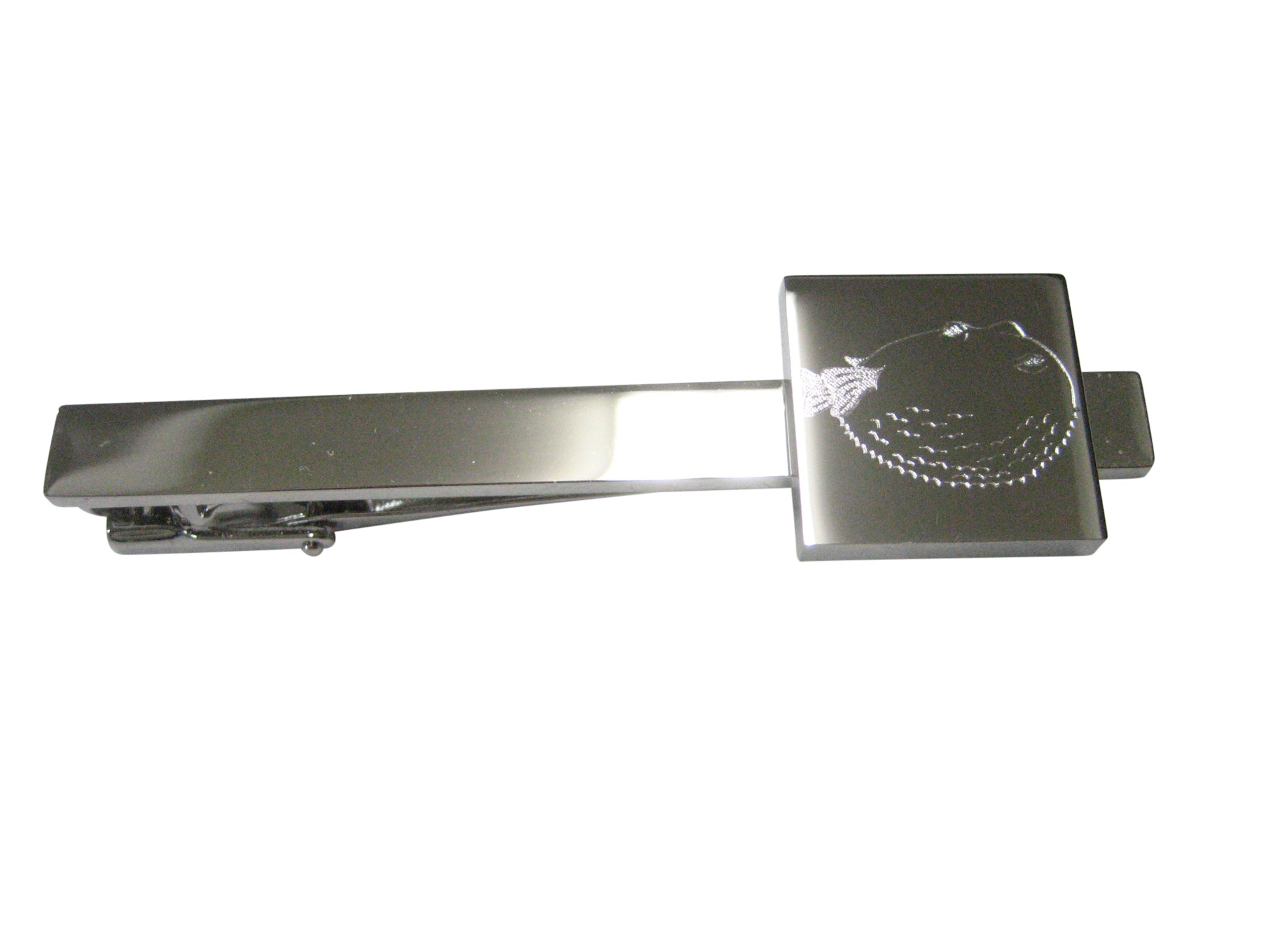 Silver Toned Square Etched Blowfish Fugu Puffer Fish Tie Clip