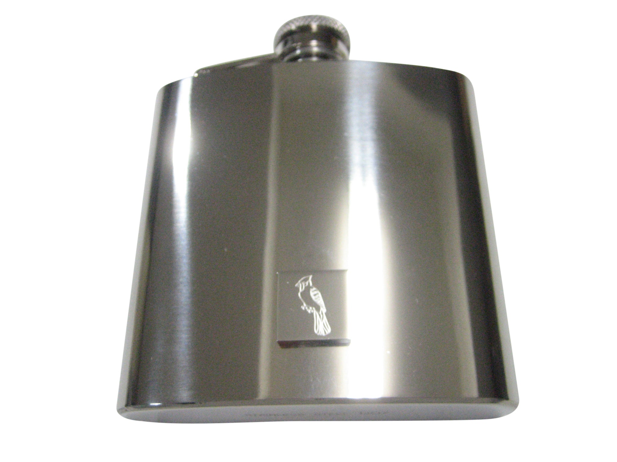 Silver Toned Square Etched Blue Jay Bird 6oz Flask