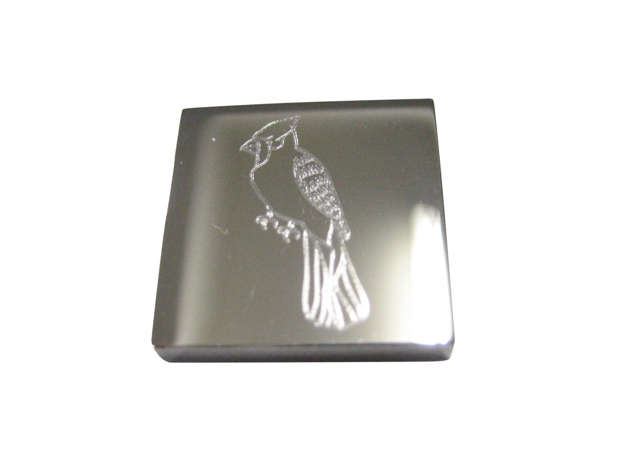 Silver Toned Square Etched Blue Jay Bird Magnet