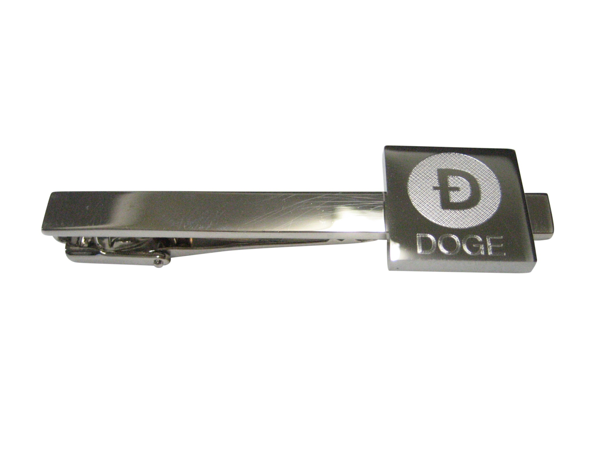Silver Toned Square Etched Doge Coin Cryptocurrency Blockchain Tie Clip