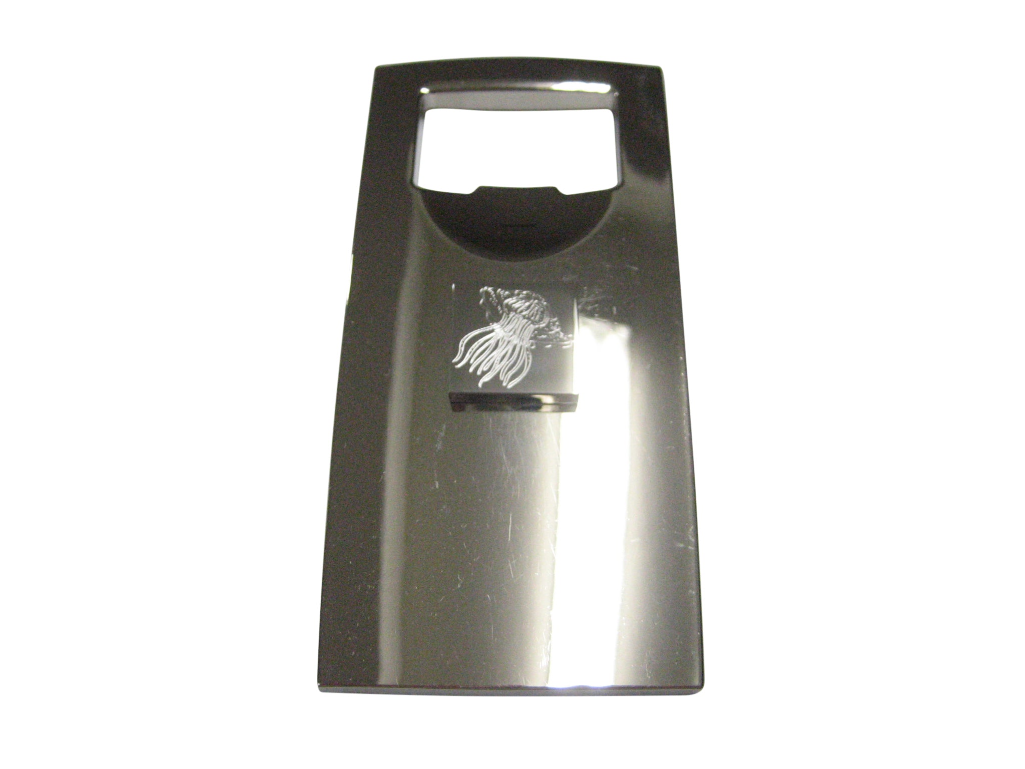 Silver Toned Square Etched Jellyfish Bottle Opener
