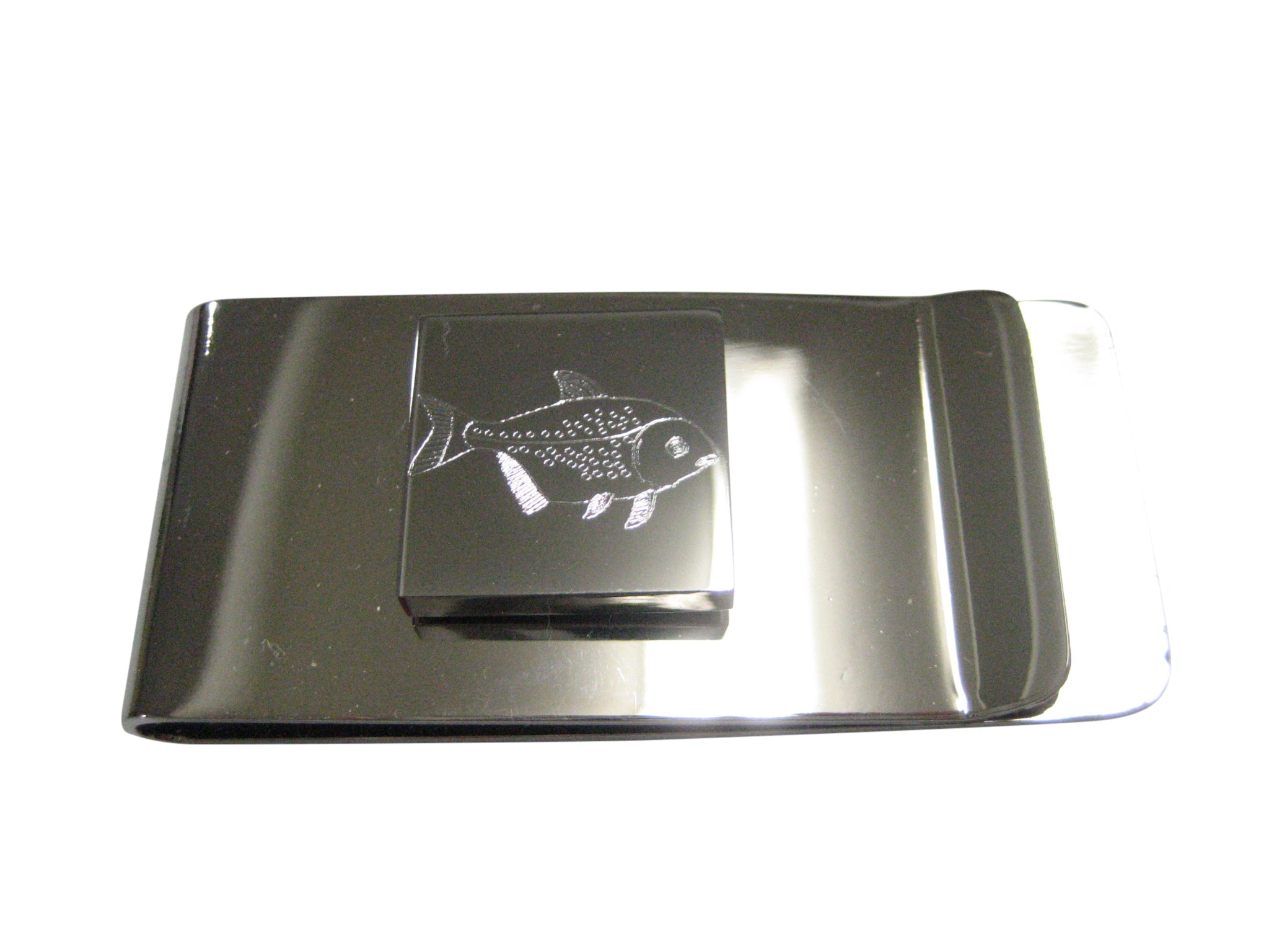 Silver Toned Square Etched Piranha Pirana Fish Money Clip