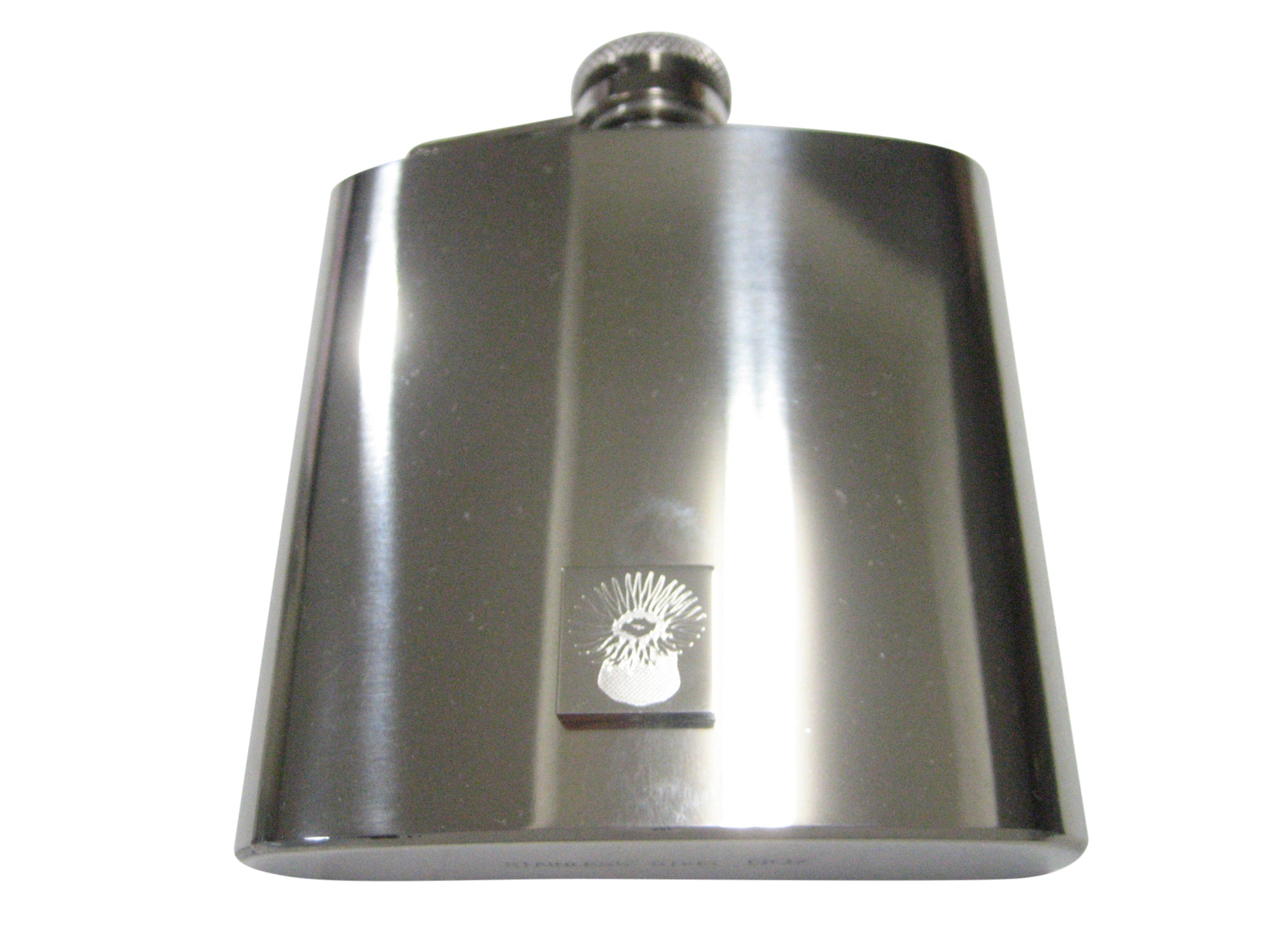 Silver Toned Square Etched Sea Anemone 6oz Flask
