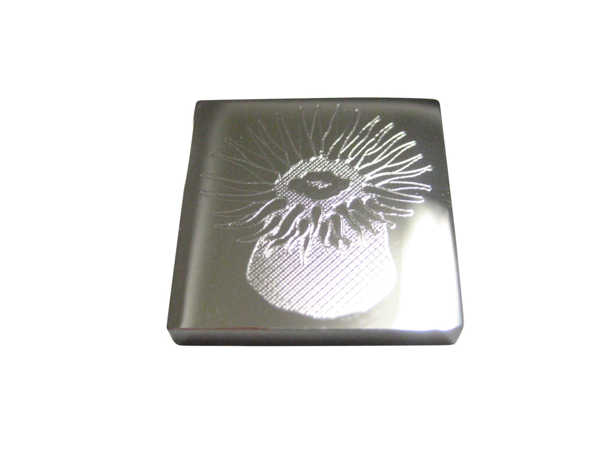 Silver Toned Square Etched Sea Anemone Magnet