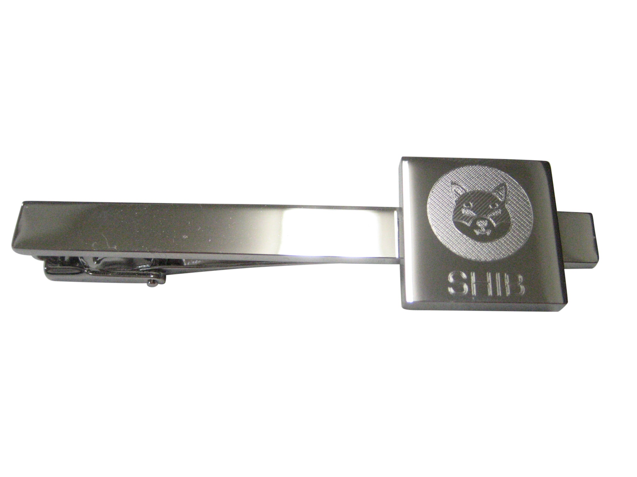Silver Toned Square Etched Shiba Inu Coin SHIB Cryptocurrency Blockchain Tie Clip
