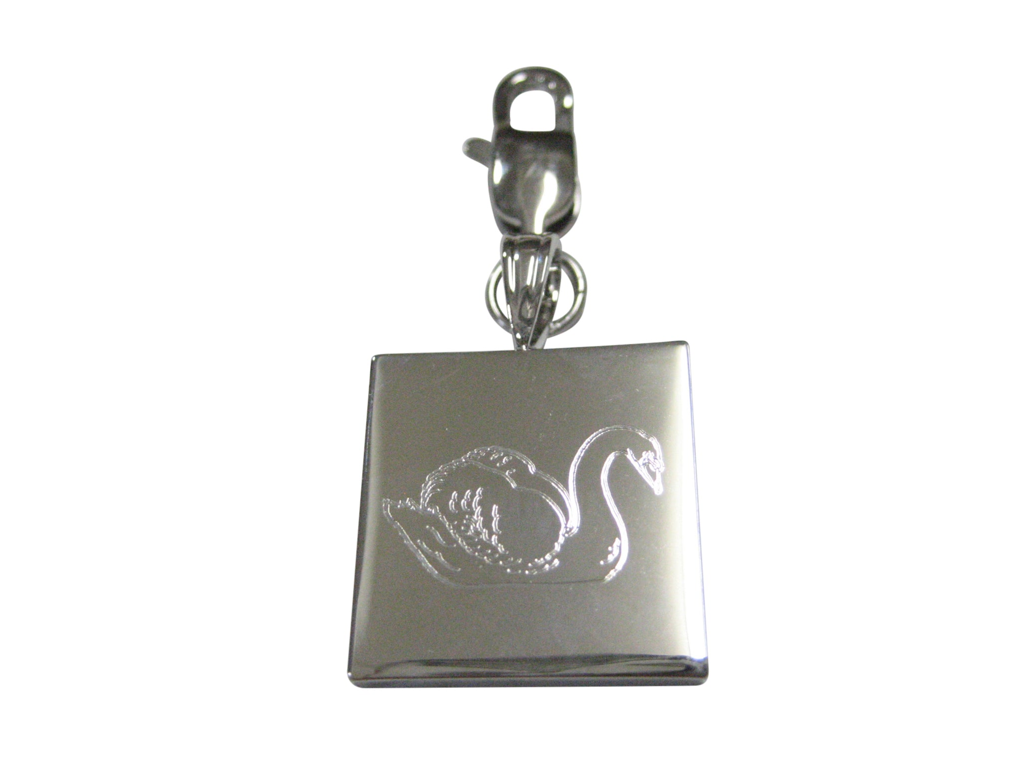 Silver Toned Square Etched Swan Bird Pendant Zipper Pull Charm