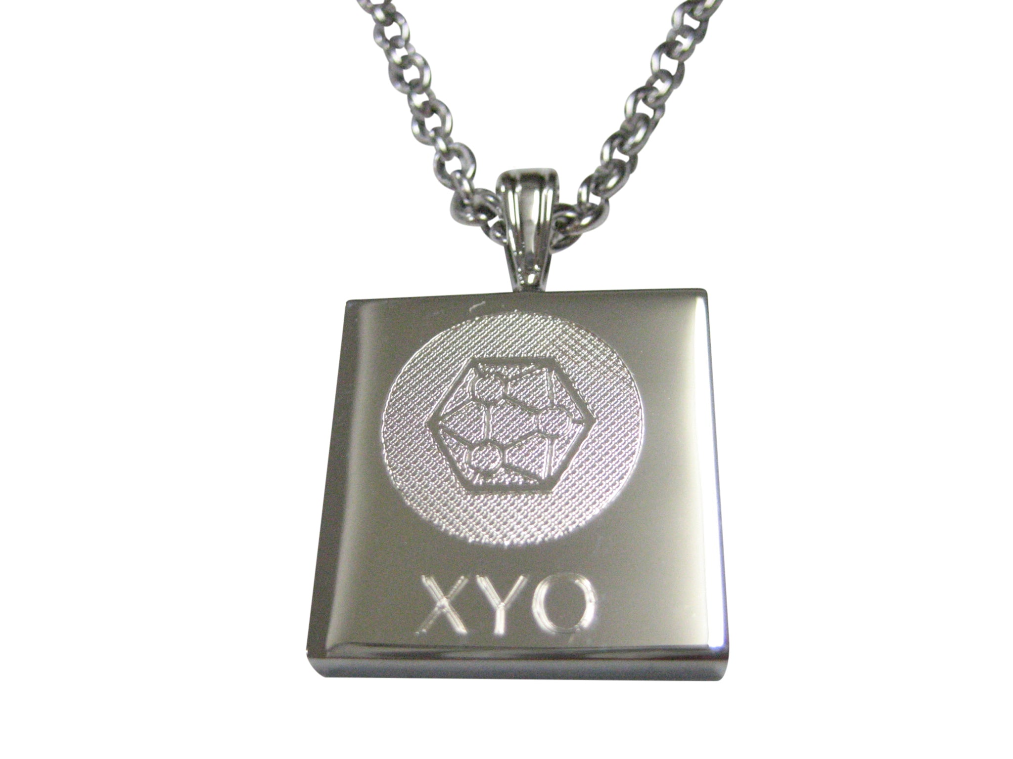 Silver Toned Square Etched XYO Coin Cryptocurrency Blockchain Pendant Necklace