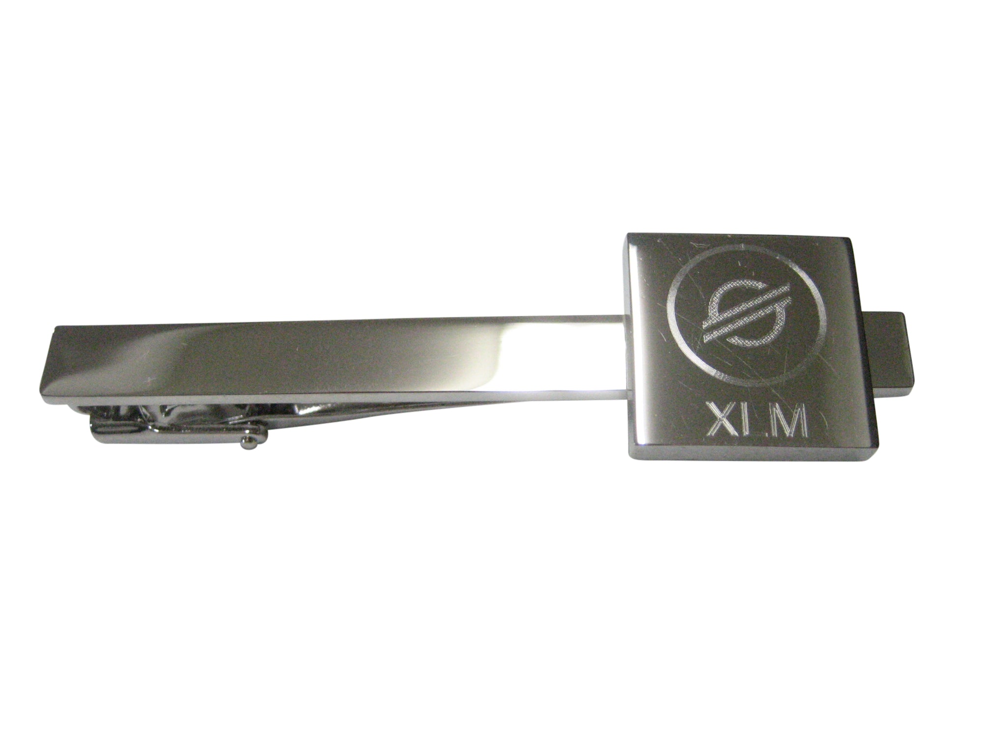Silver Toned Square Pendant Etched Stellar Lumens Coin XLM Cryptocurrency Blockchain Tie Clip