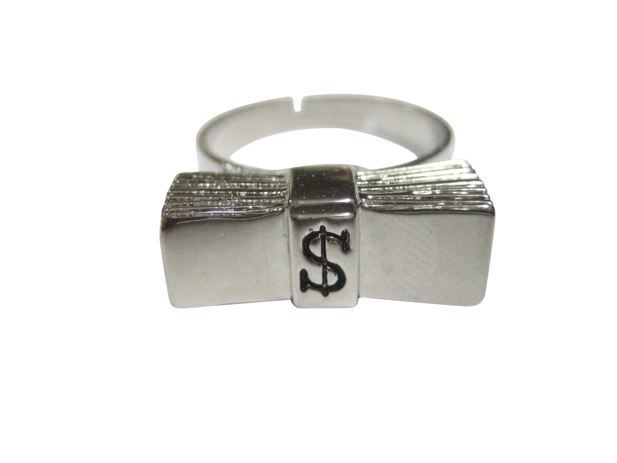 Silver Toned Stack of Dollar Bills Adjustable Size Fashion Ring