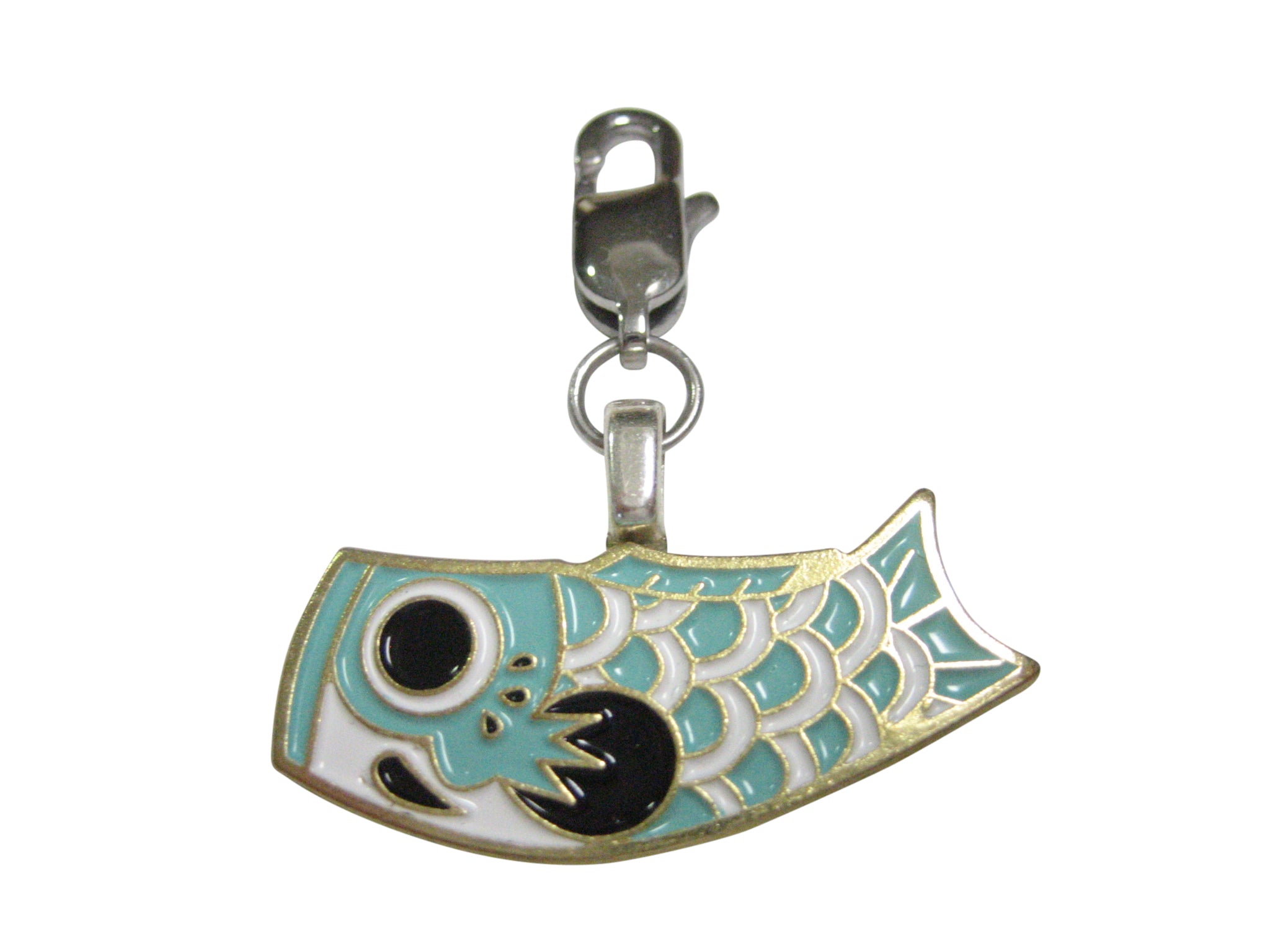 Teal Toned Festival Koi Flag Koinobori Pendant Zipper Pull Charm