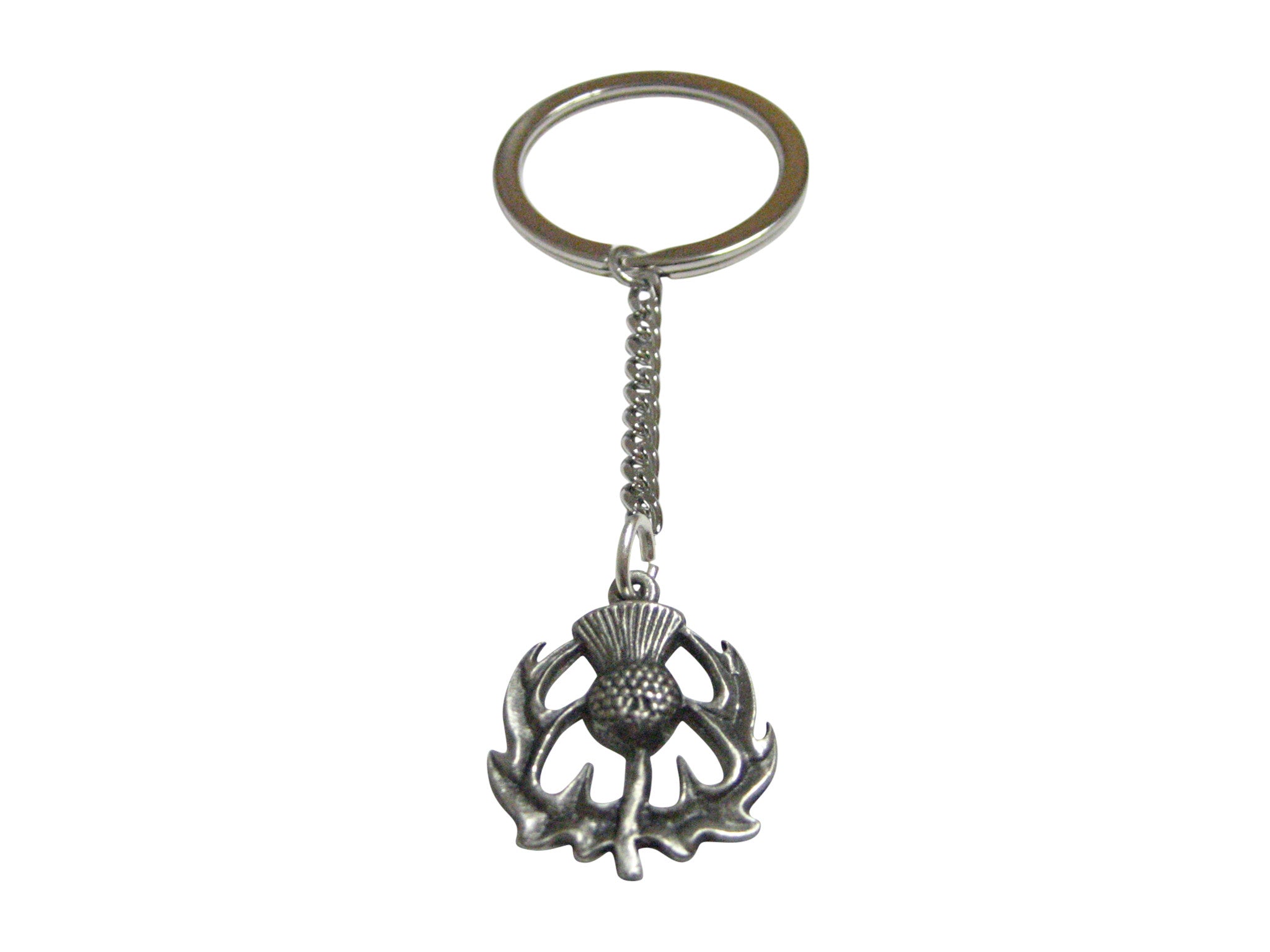 Textured Scottish Thistle Pendant Keychain
