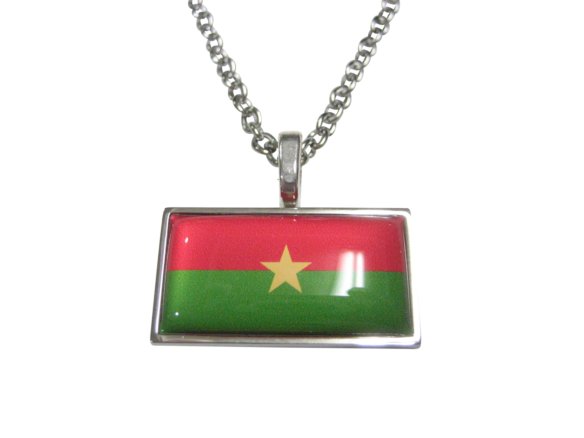 Thin Bordered Burkina Faso Flag Pendant Necklace