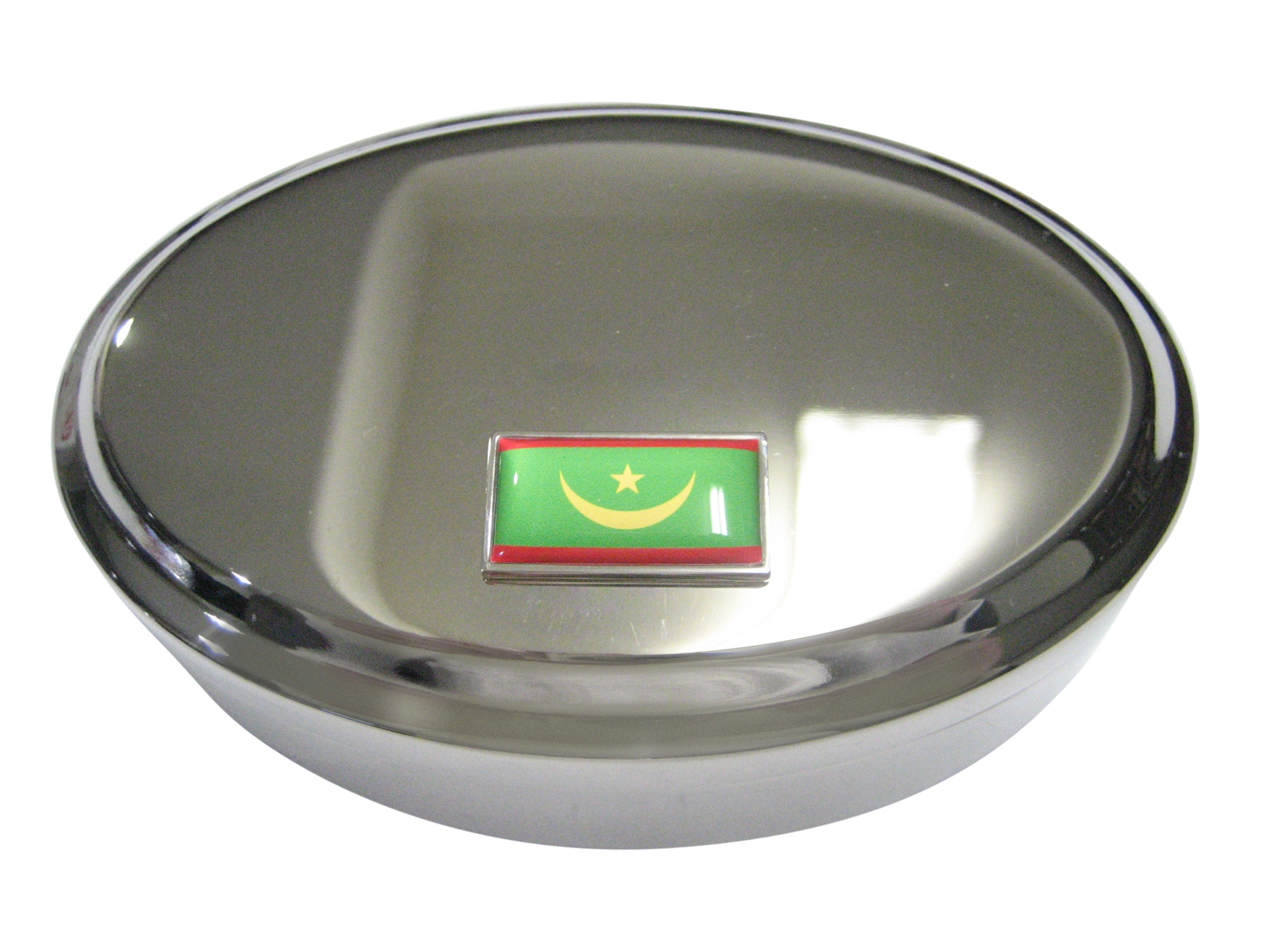 Thin Bordered Islamic Republic of Mauritania Flag Oval Trinket Jewelry Box
