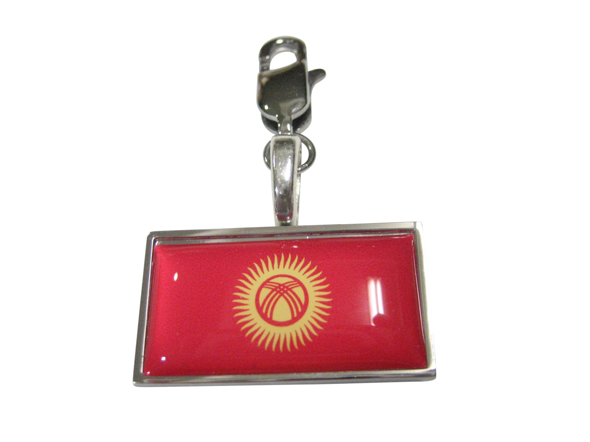Thin Bordered Kyrgyzstan Kyrgyz Republic Kirghizia Flag Pendant Zipper Pull Charm