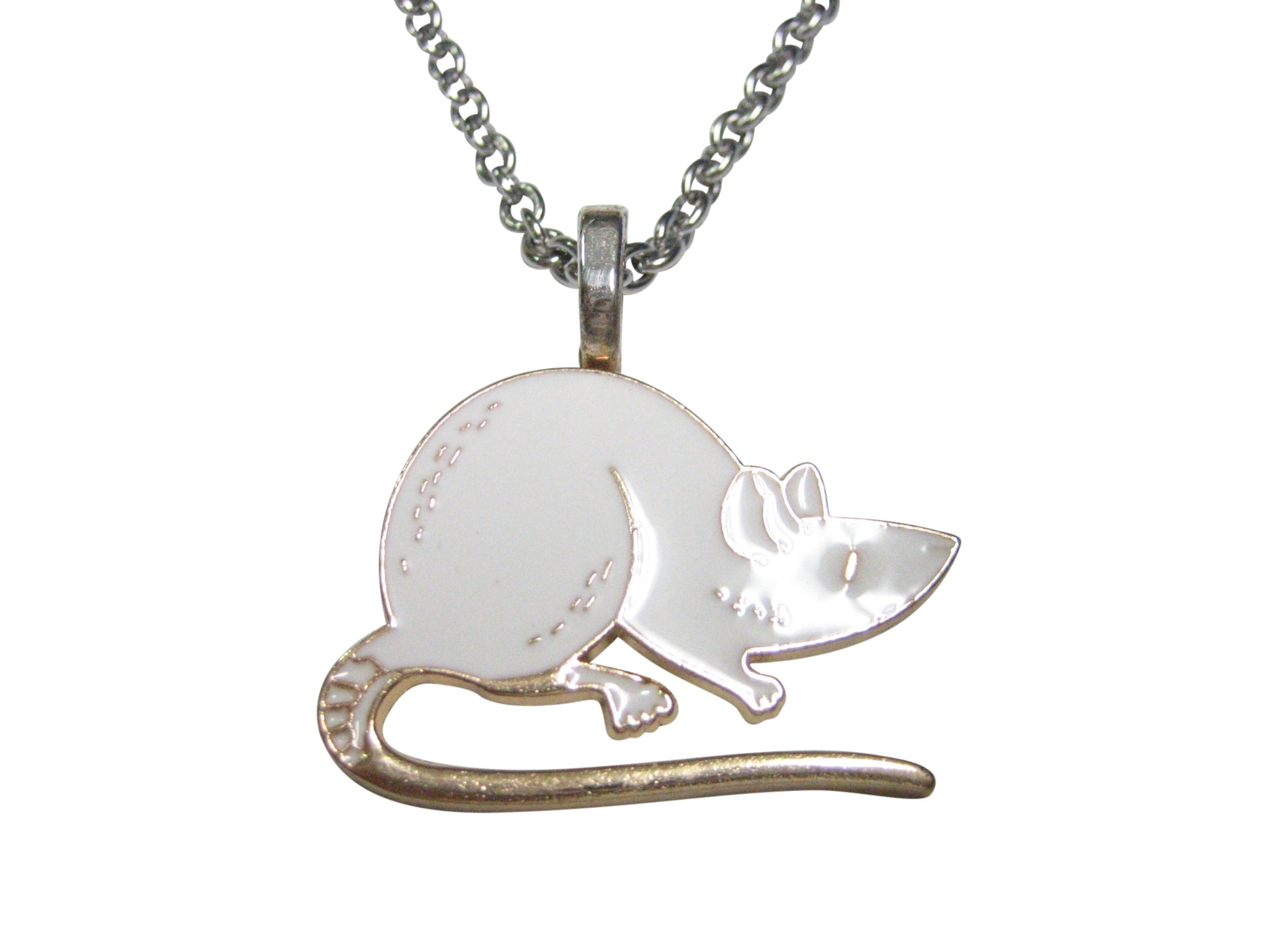White Toned Rat Pendant Necklace