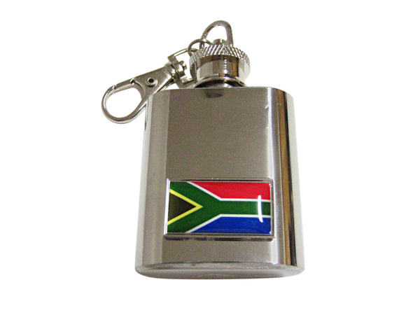 Thin Bordered South Africa Flag Pendant 1 Oz. Stainless Steel Key Chain Flask