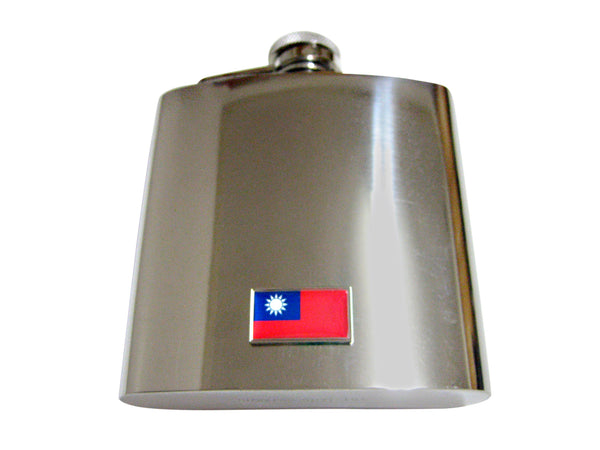 Thin Bordered Taiwan Flag Pendant 6 Oz. Stainless Steel Flask