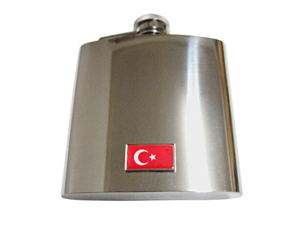 Thin Bordered Turkey Flag Pendant 6 Oz. Stainless Steel Flask